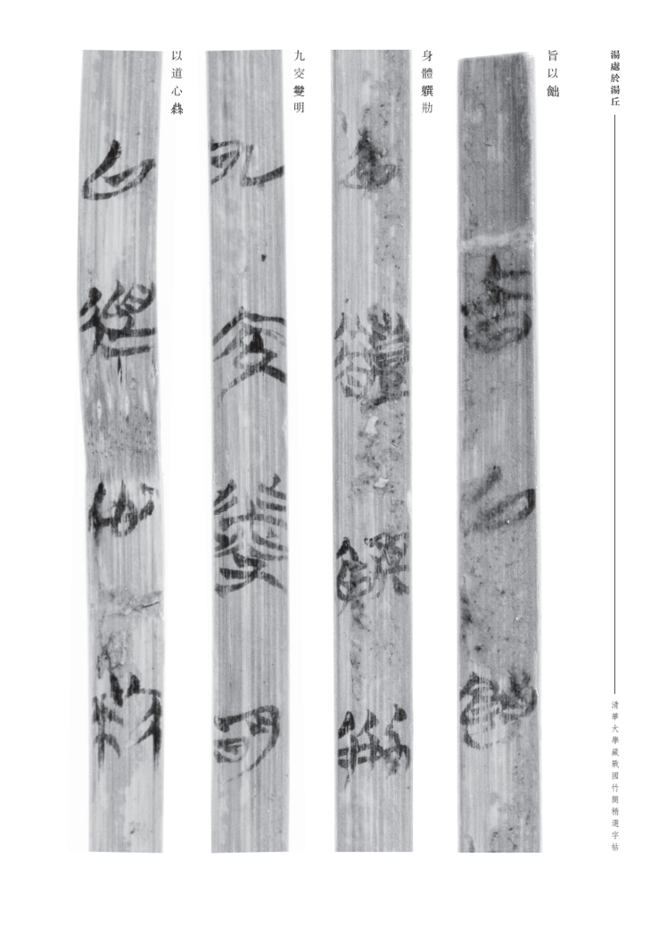 清华大学于二〇〇八年七月收藏的战国中晚期竹简,被称为“清华简”。清华简共约有二五〇〇枚(包括少量残断简),是迄今发现的战国竹简中为数较多的一批。清华简在秦之前就被埋入地下,未经“焚书坑儒”影响,所以能够最大限度地展现先秦古籍的原貌。清华简大多使用的是较为典型的楚文字,书手书写娴熟,工整而不失优雅,自如而不失规矩,是楚文字书写的典型范例。