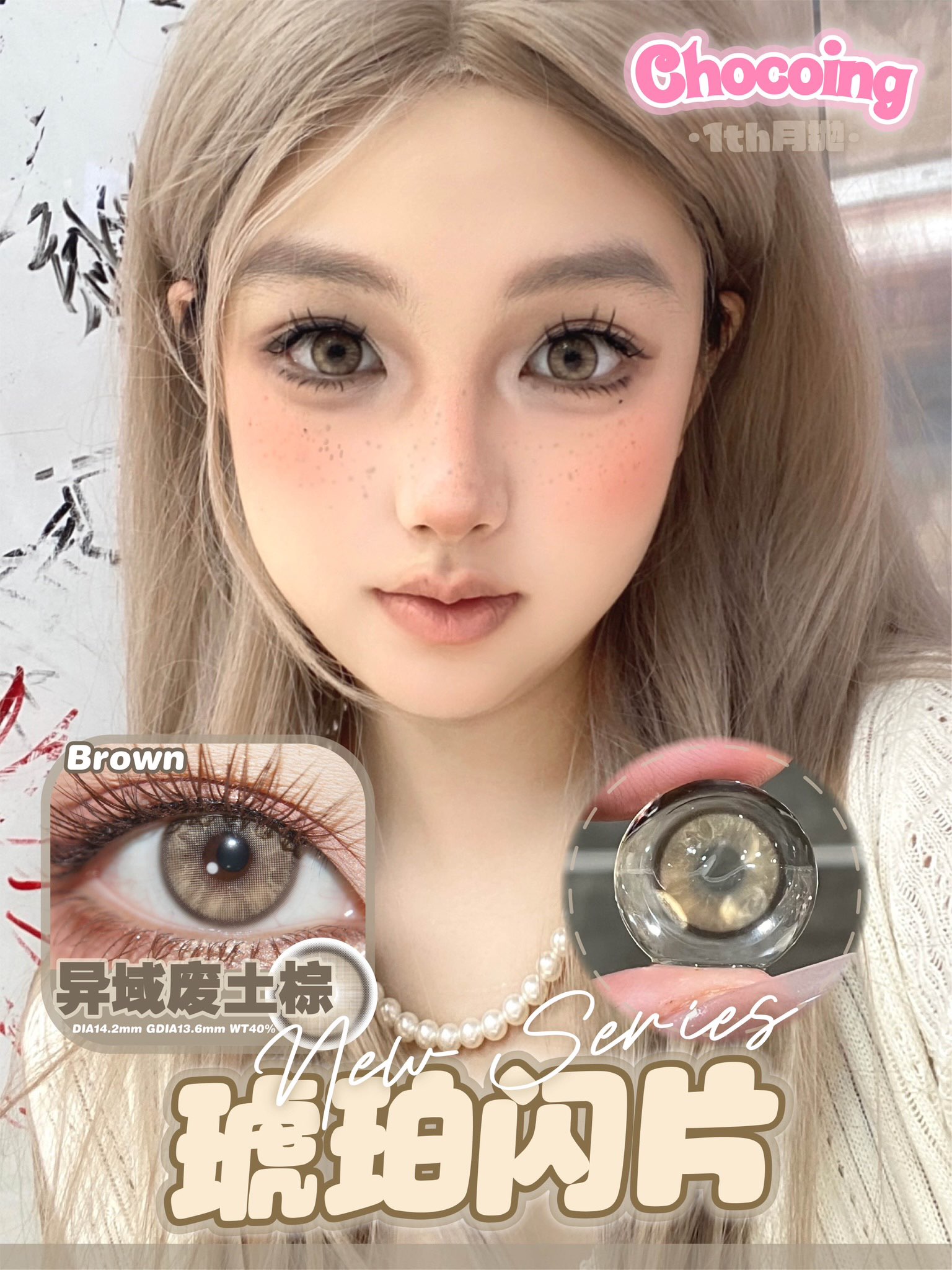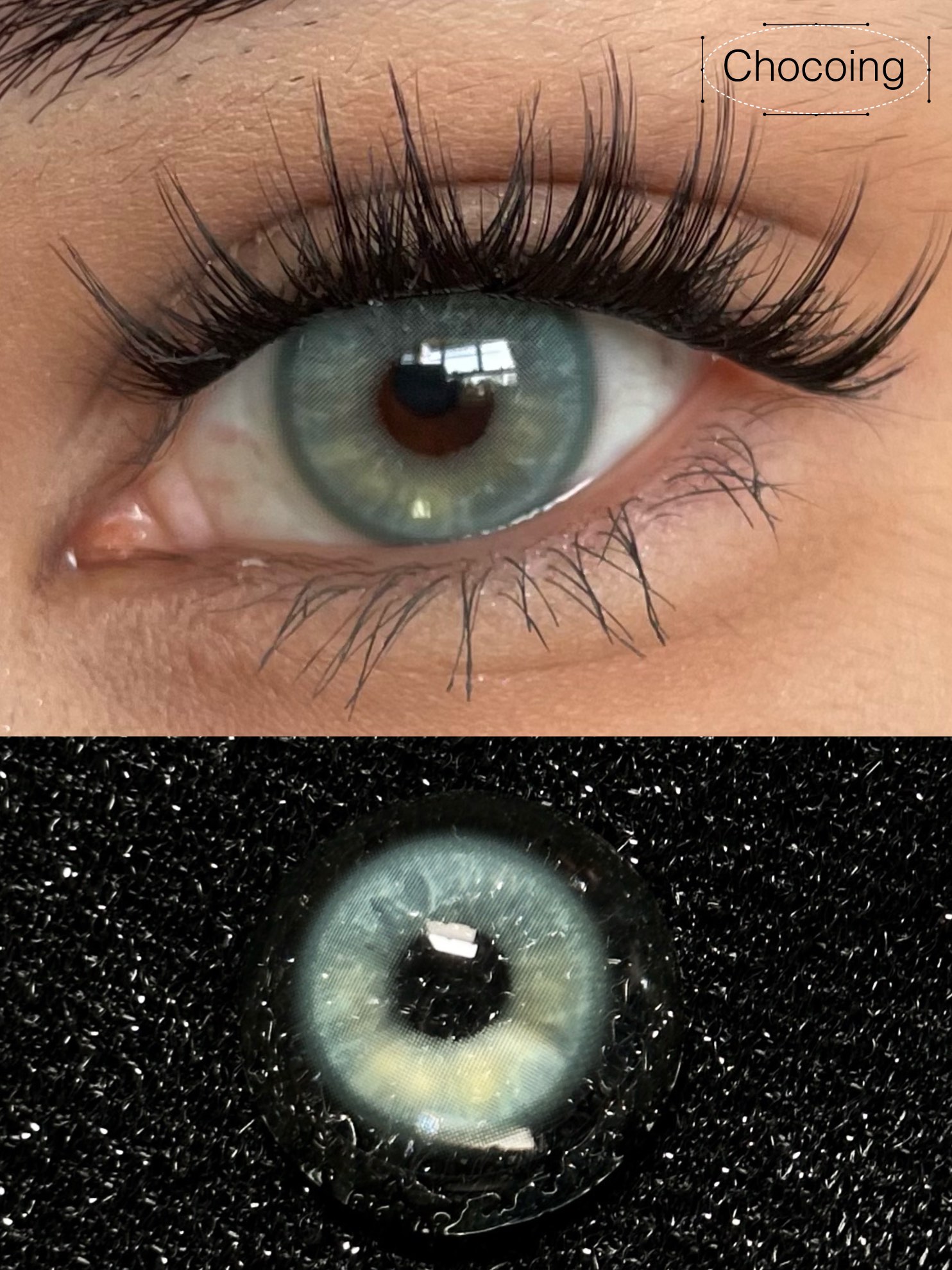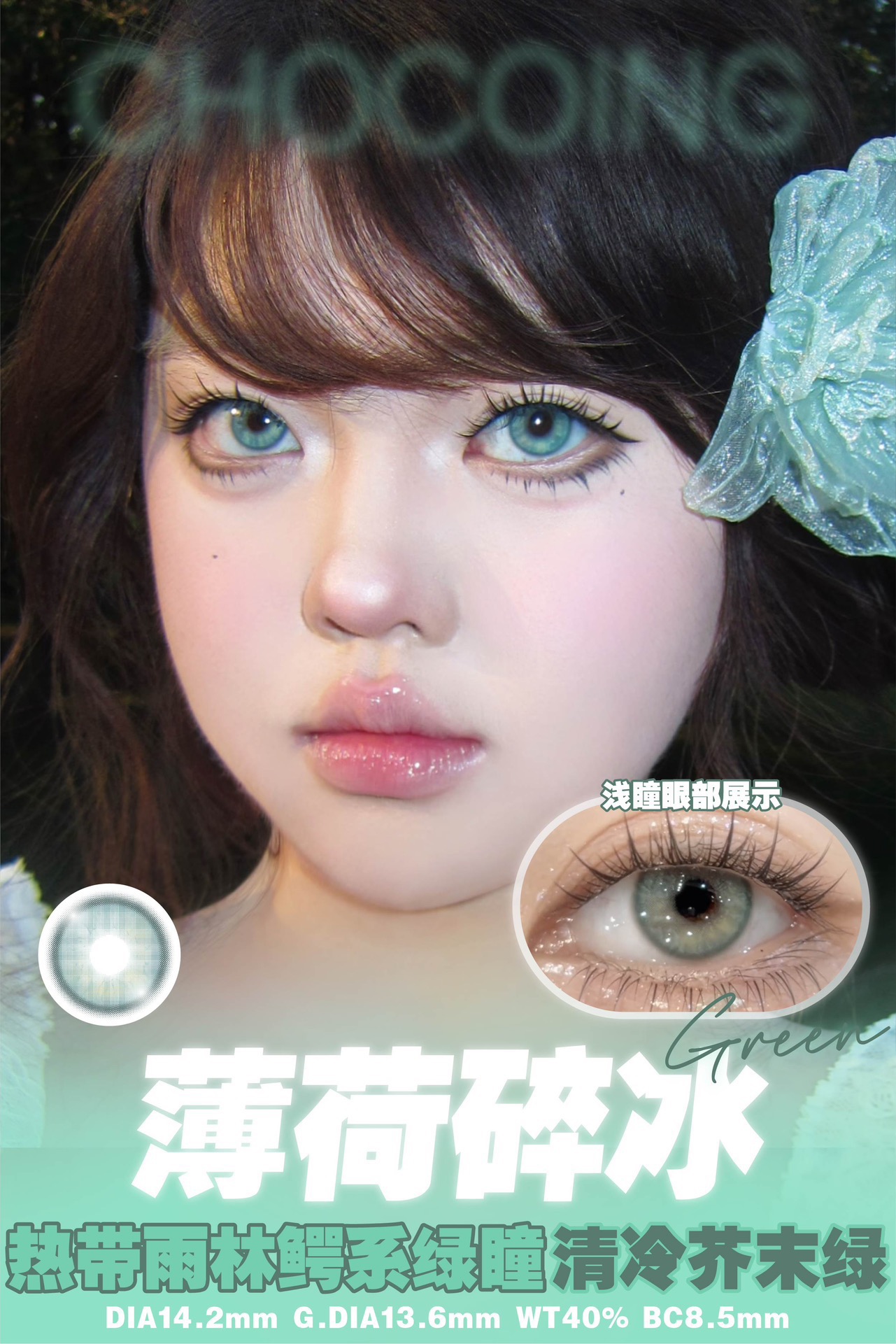 chocoing月抛 玻璃梦境 蓝/薄荷碎冰 绿/琥珀闪片 棕 14.2mm 一副2片