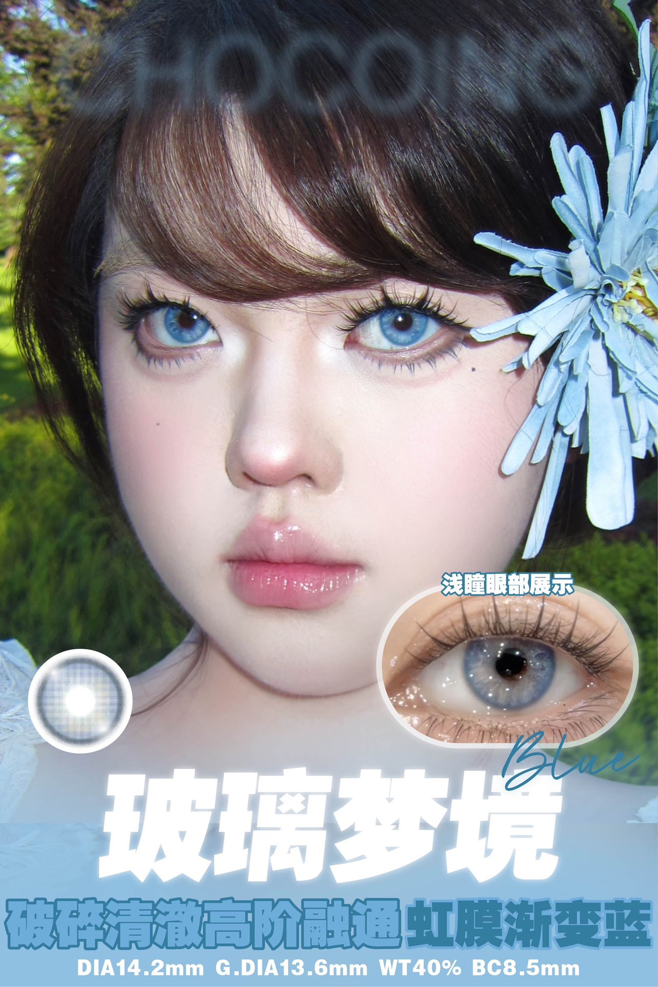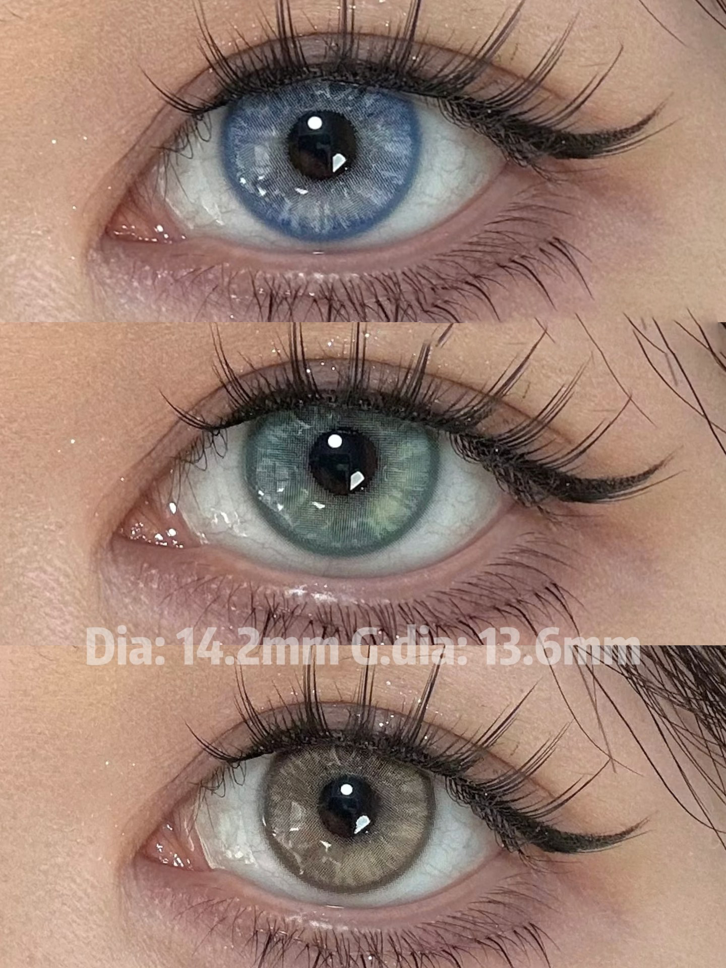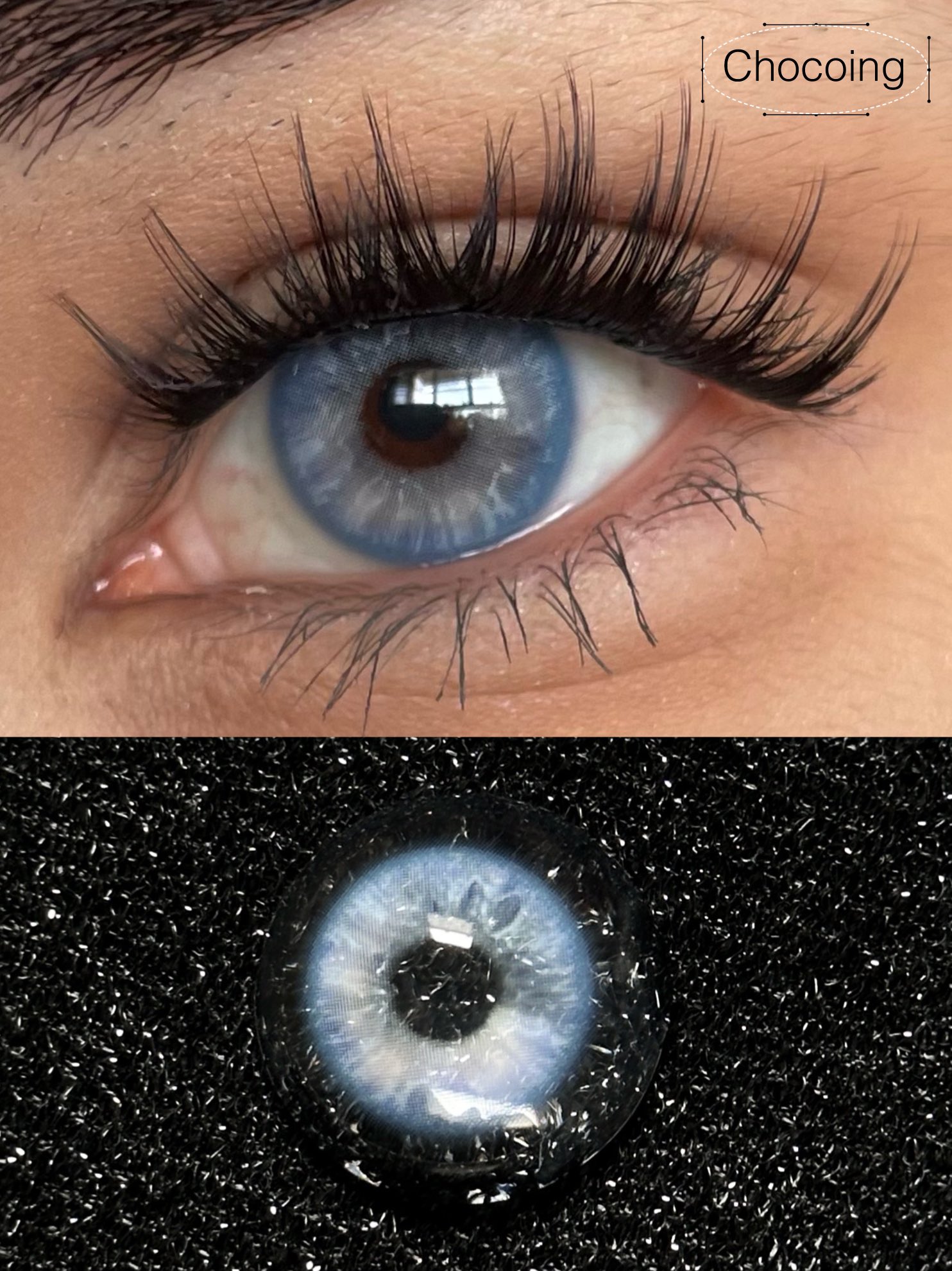 chocoing月抛 玻璃梦境 蓝/薄荷碎冰 绿/琥珀闪片 棕 14.2mm 一副2片