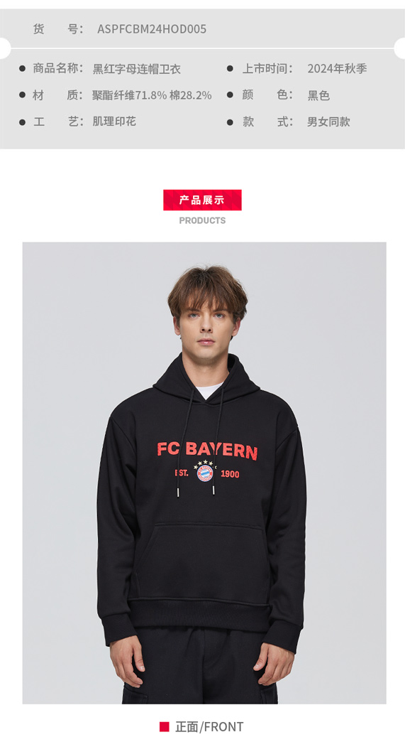 【官方正版】拜仁慕尼黑足球俱乐部 | 运动户外时尚字母卫衣
