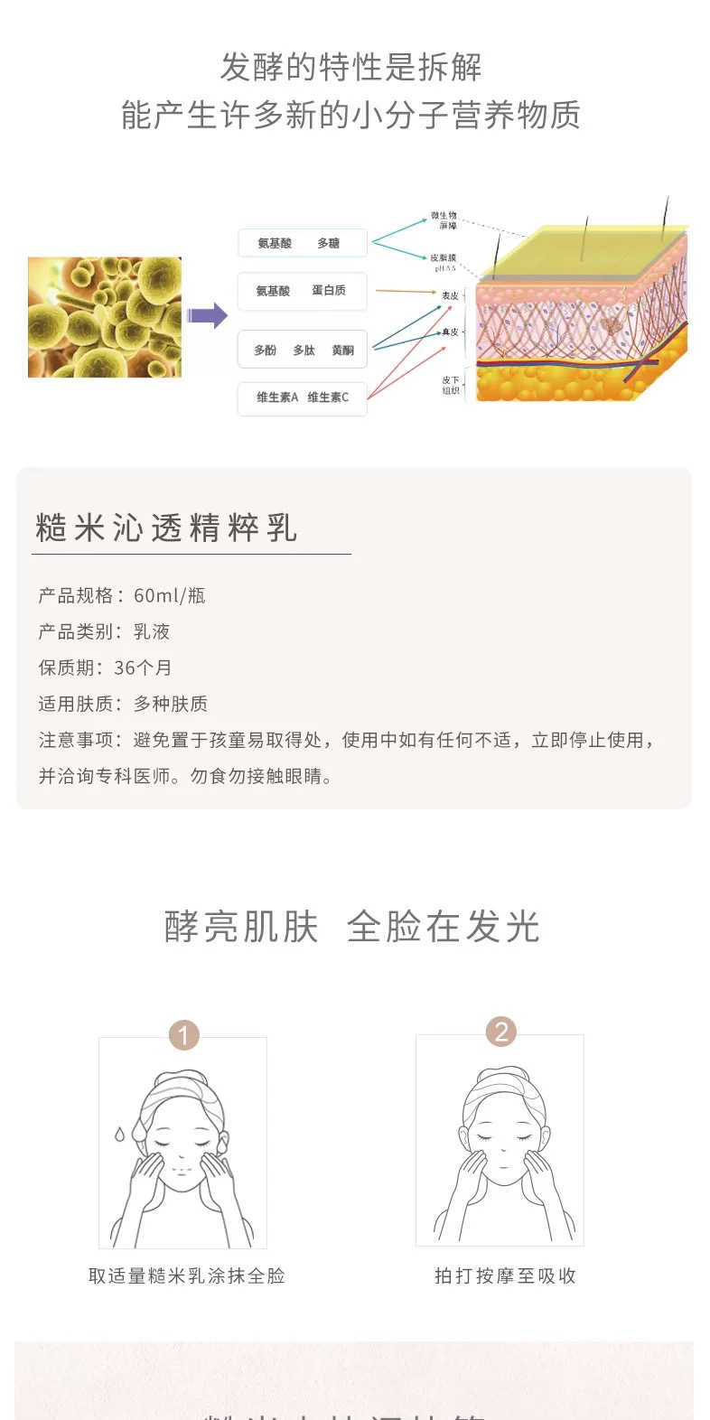 微生态发酵原浆护肤,我们的大米发酵水绝对有发言权!不仅仅是通透肤质淡化痘印那么简单,还可以激活皮肤表层友善菌抑制有害菌,正向调节肌肤微生物组,让皮肤活力健康原生态!
