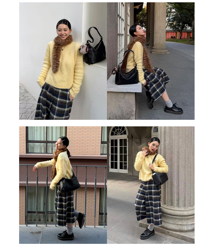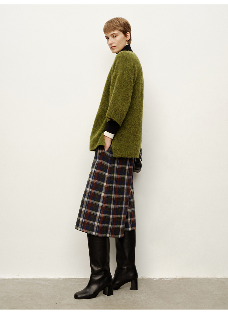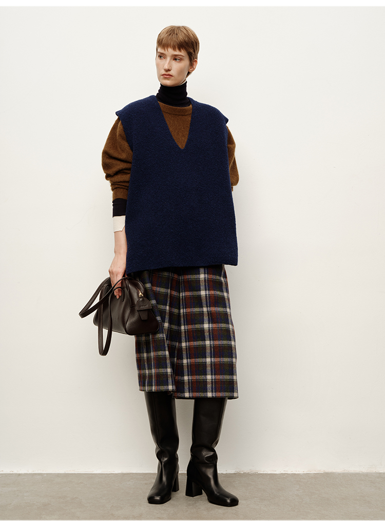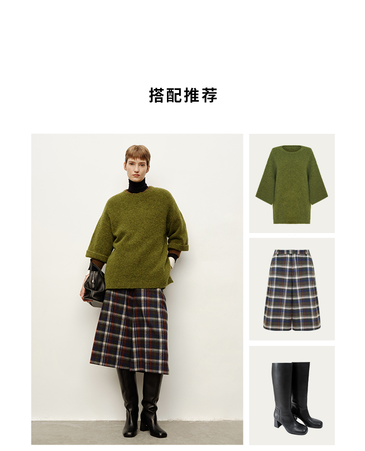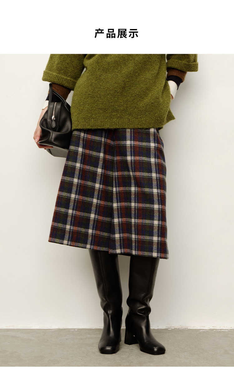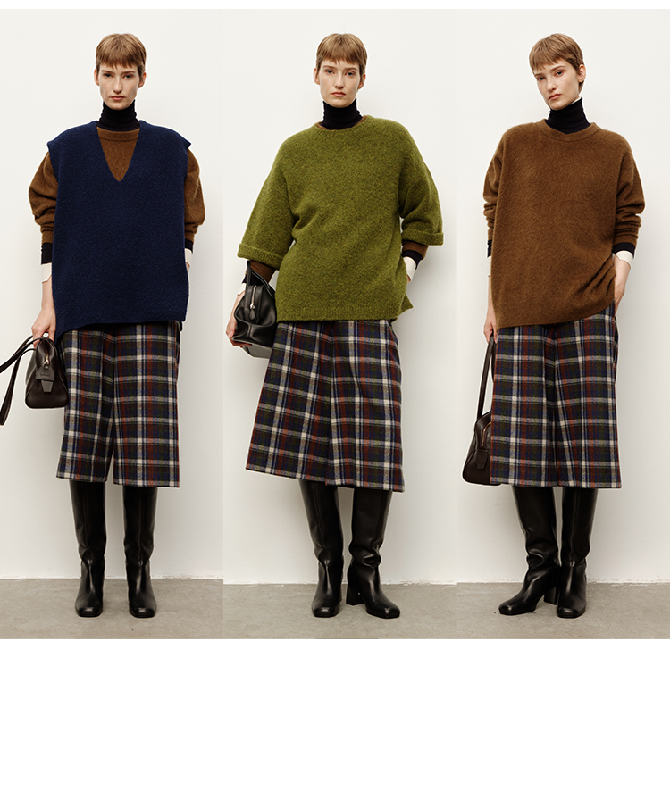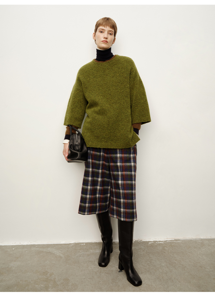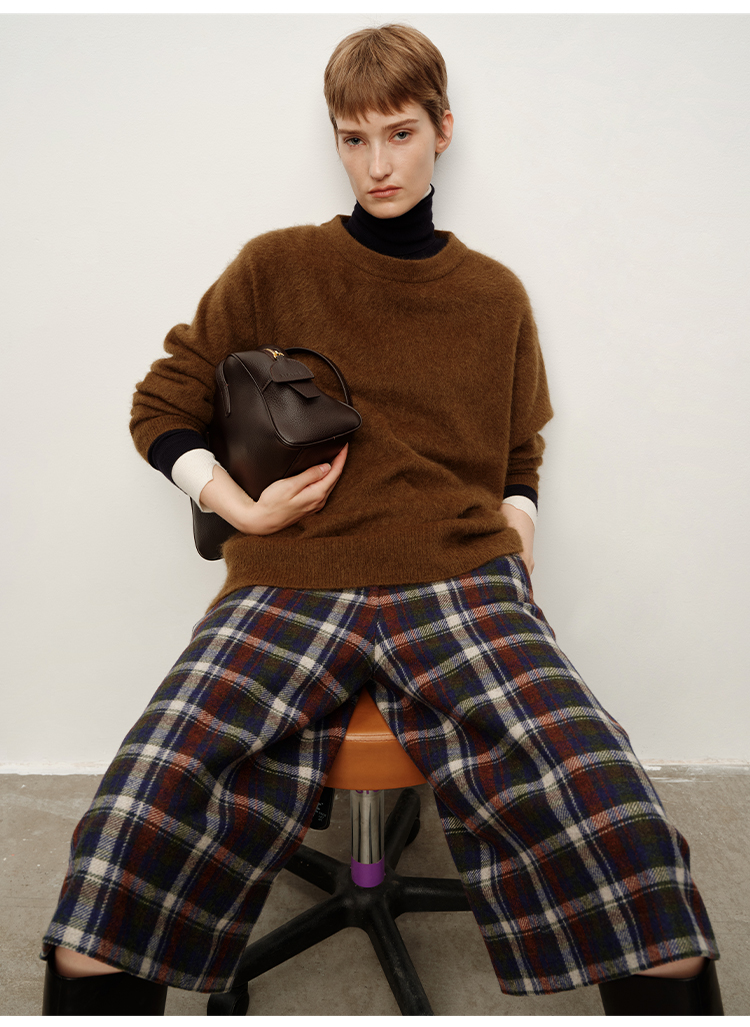HIDEMI 复古色织格纹羊毛阔腿宽松休闲裤加厚毛呢中长裤配靴神裤