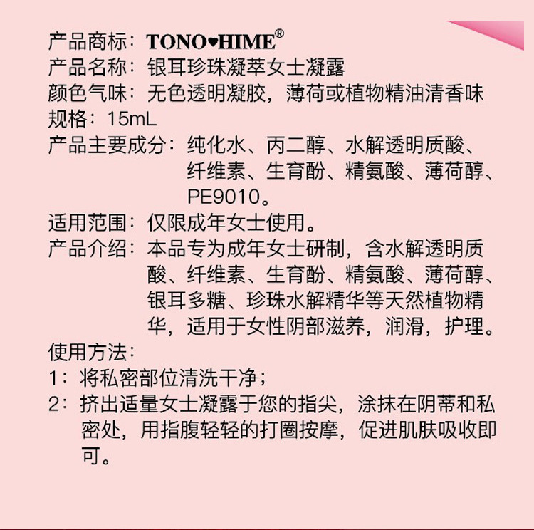 TONO HIME女用快感提升凝露高潮增强液15ML夫妻情趣珍珠润滑促感液