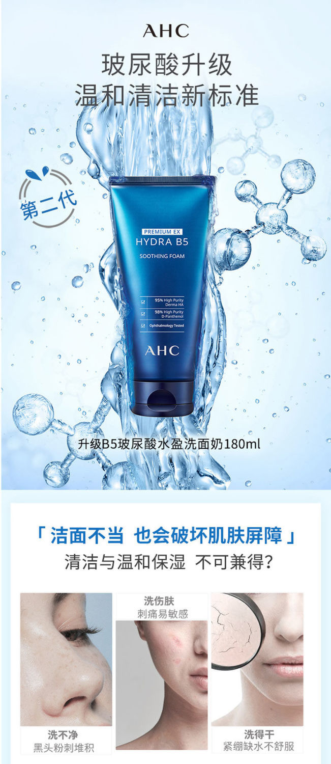 【爆款超低价预售 急单慎拍】AHC韩国B5玻尿酸洗面奶清洁补水深层洁面保湿去除角质镇静敏感 30ml