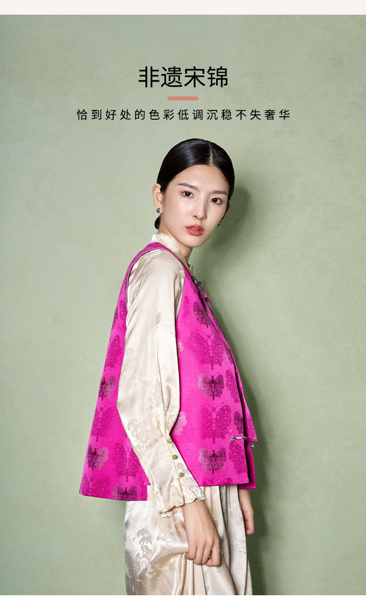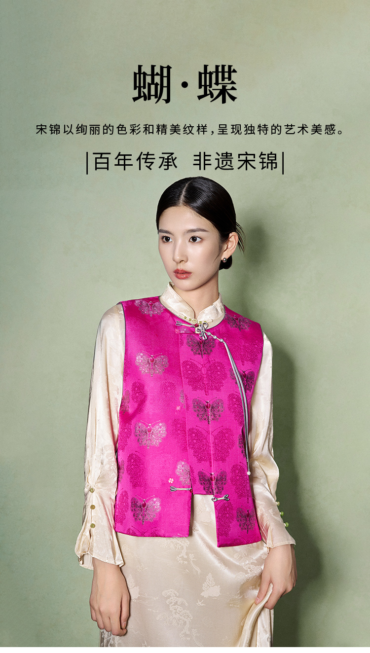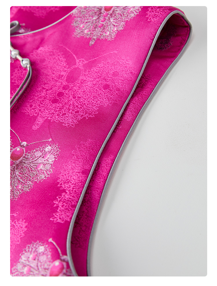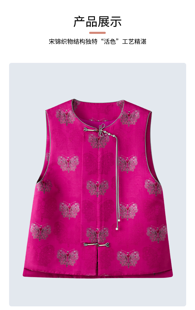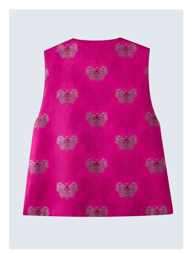 SAINTJOY/上久楷女式宋锦马甲 玫红蝴蝶 CY1044207029