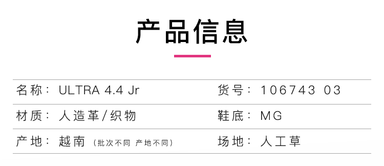 PUMA/彪马ULTRA 4.4 青少年入门级MG短钉儿童足球鞋男106743-03