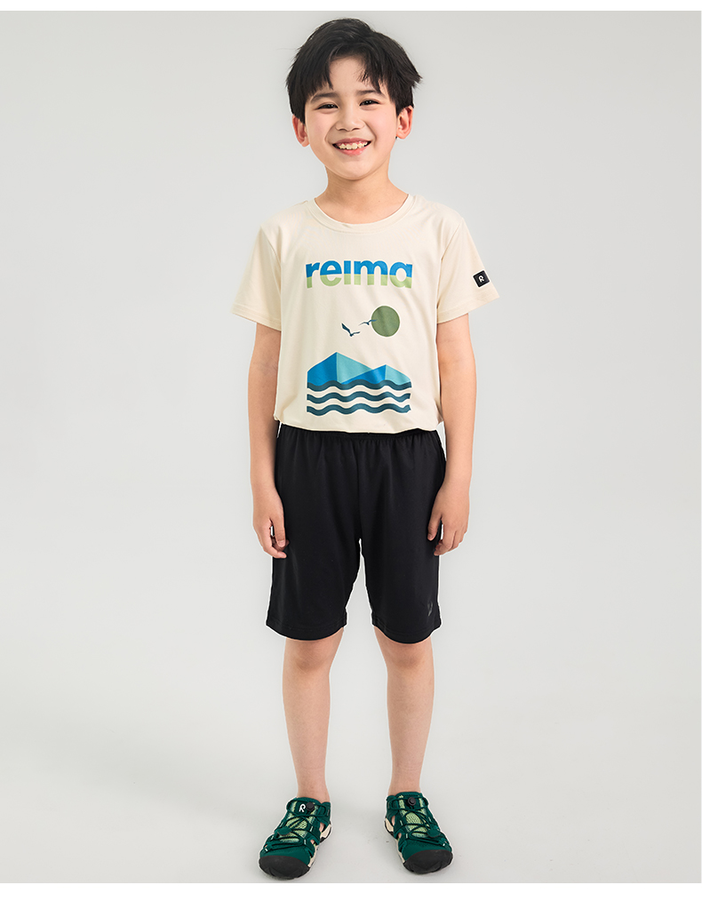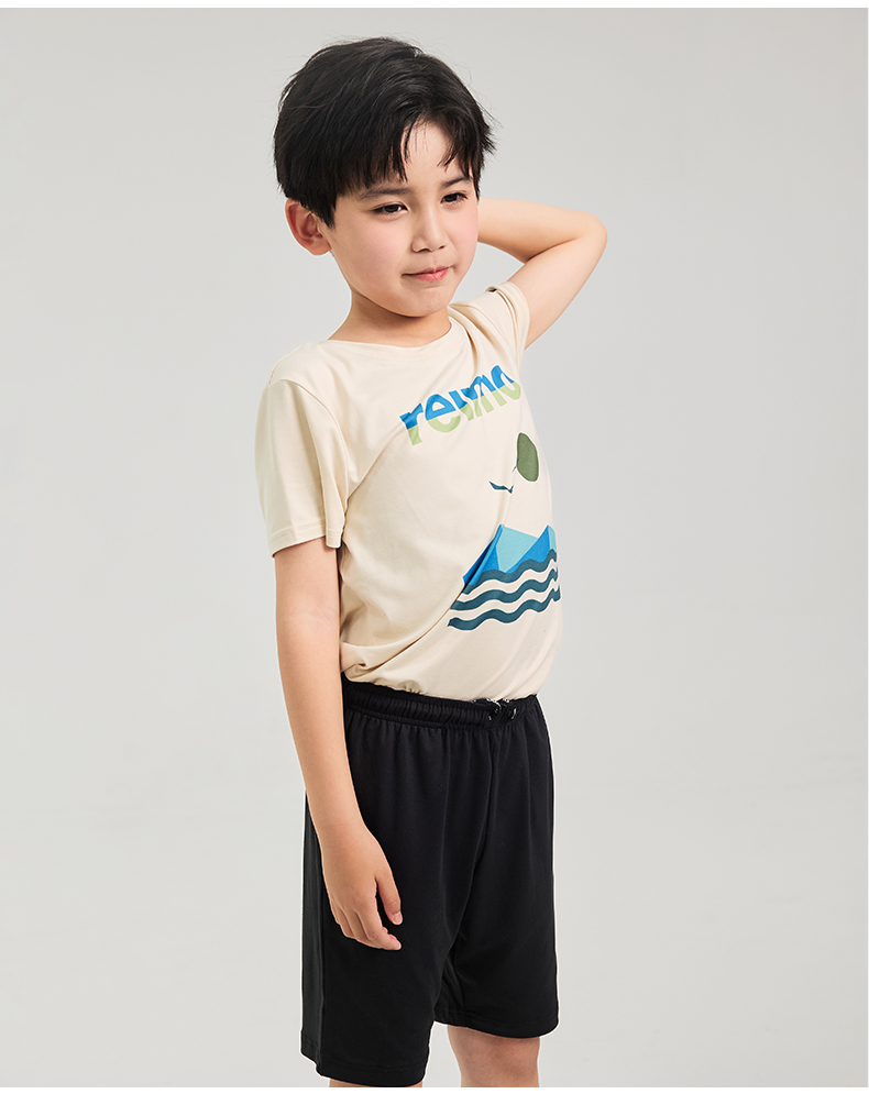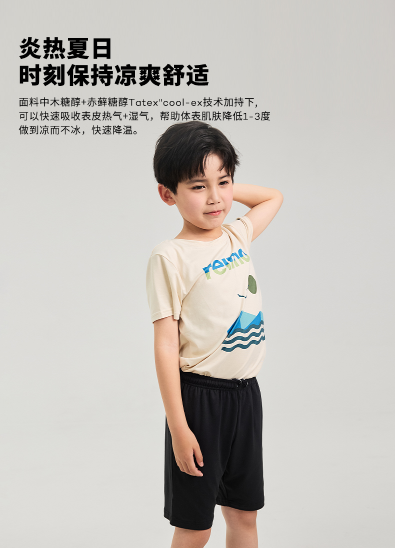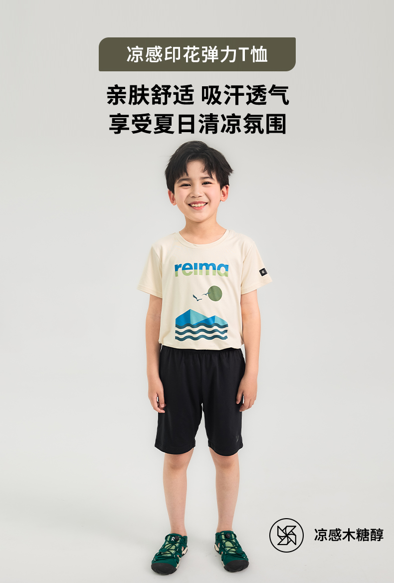 reima男女儿童T恤大童2024春夏新款木糖醇凉感防晒白色圆领短袖