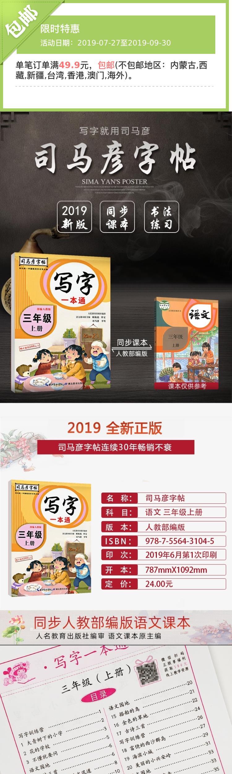 司马彦字帖 写字一本通三年级上册语文同步练字帖部编人教版钢笔临摹字帖小学写字课课练三年级上册写字书