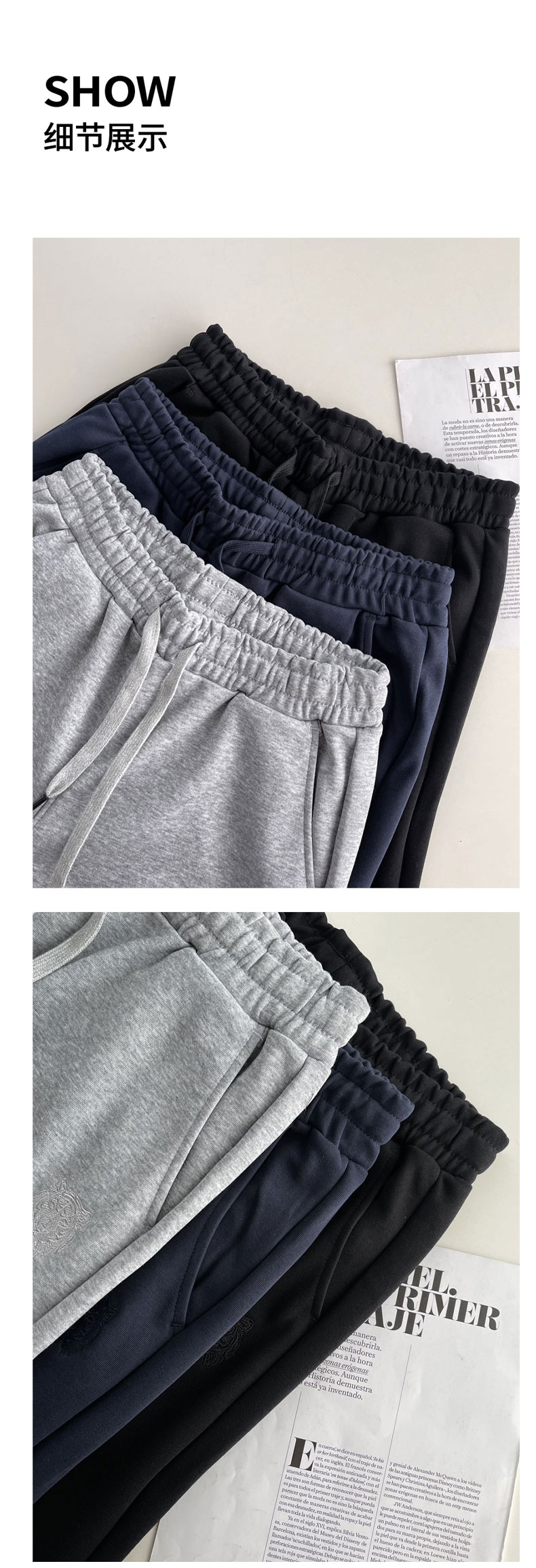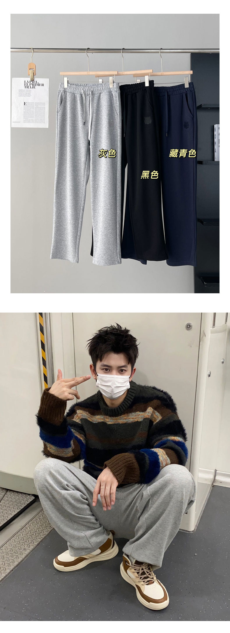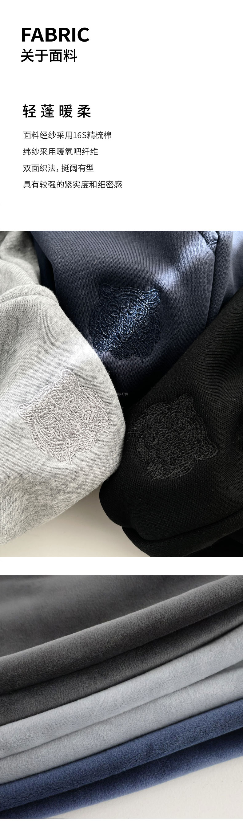 BASICLIVE 男士虎头刺绣直筒加绒卫裤 420G一体加绒针织棉,外层紧密防风,内里细腻保暖;立体剪裁,廓形干净利落,上身尽显型男品格