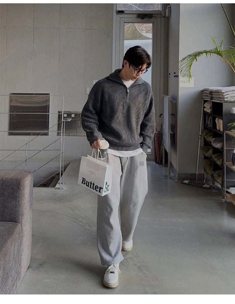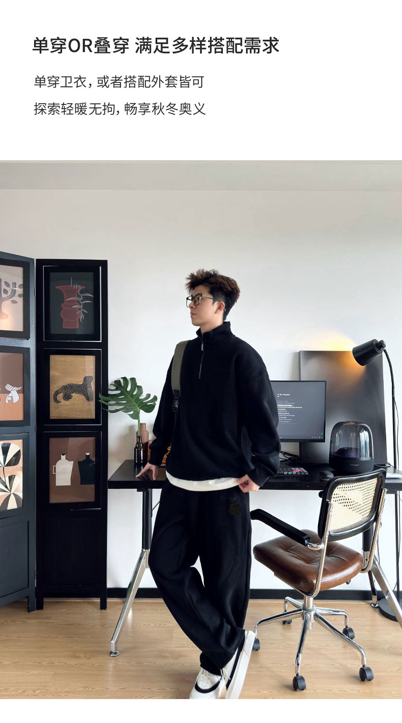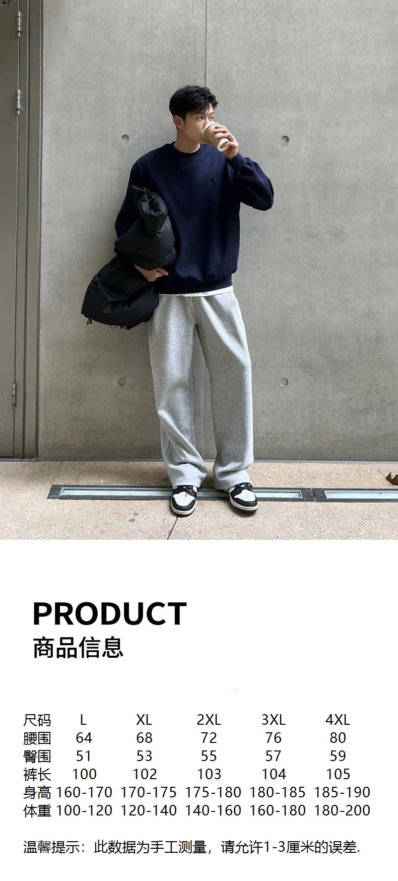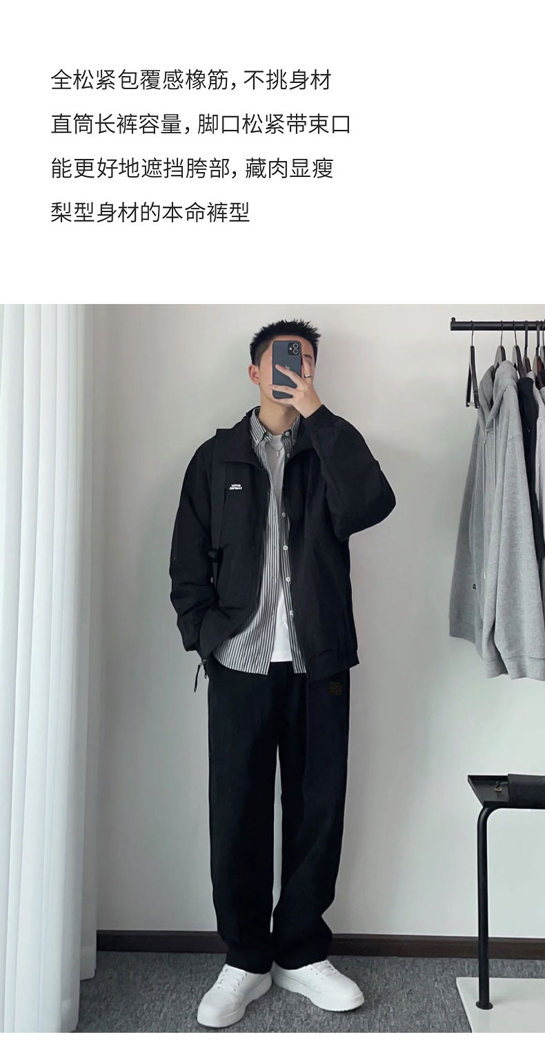 BASICLIVE 男士虎头刺绣直筒加绒卫裤 420G一体加绒针织棉,外层紧密防风,内里细腻保暖;立体剪裁,廓形干净利落,上身尽显型男品格