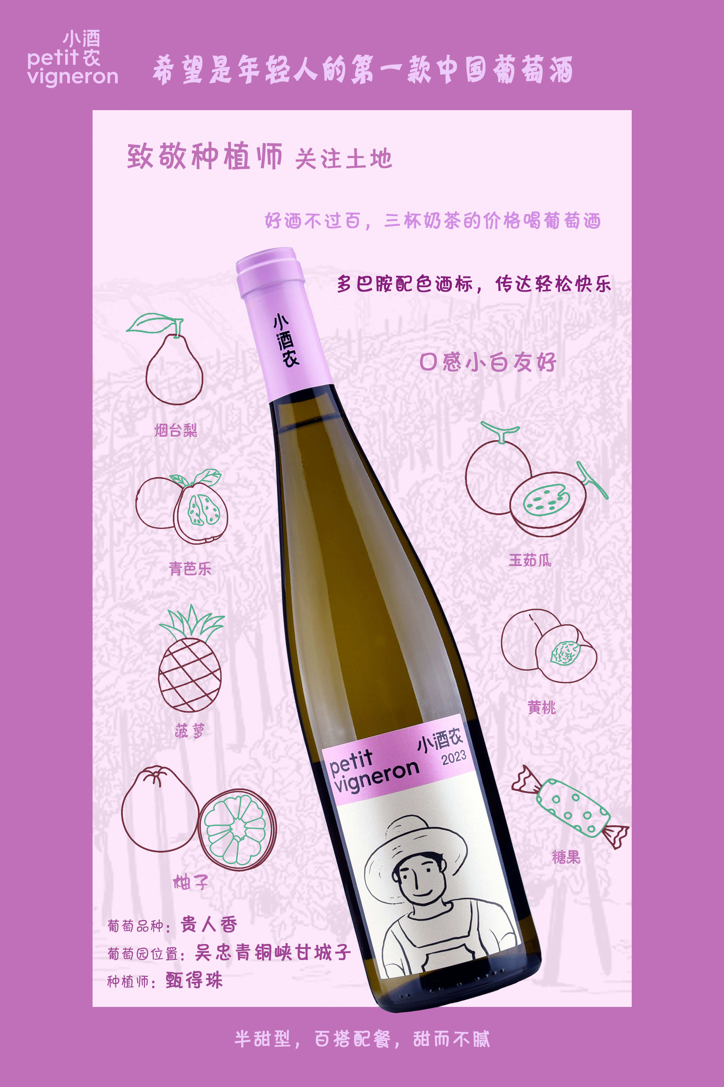 国产宁夏贺兰山贵人香半甜白葡萄酒750ml*6支