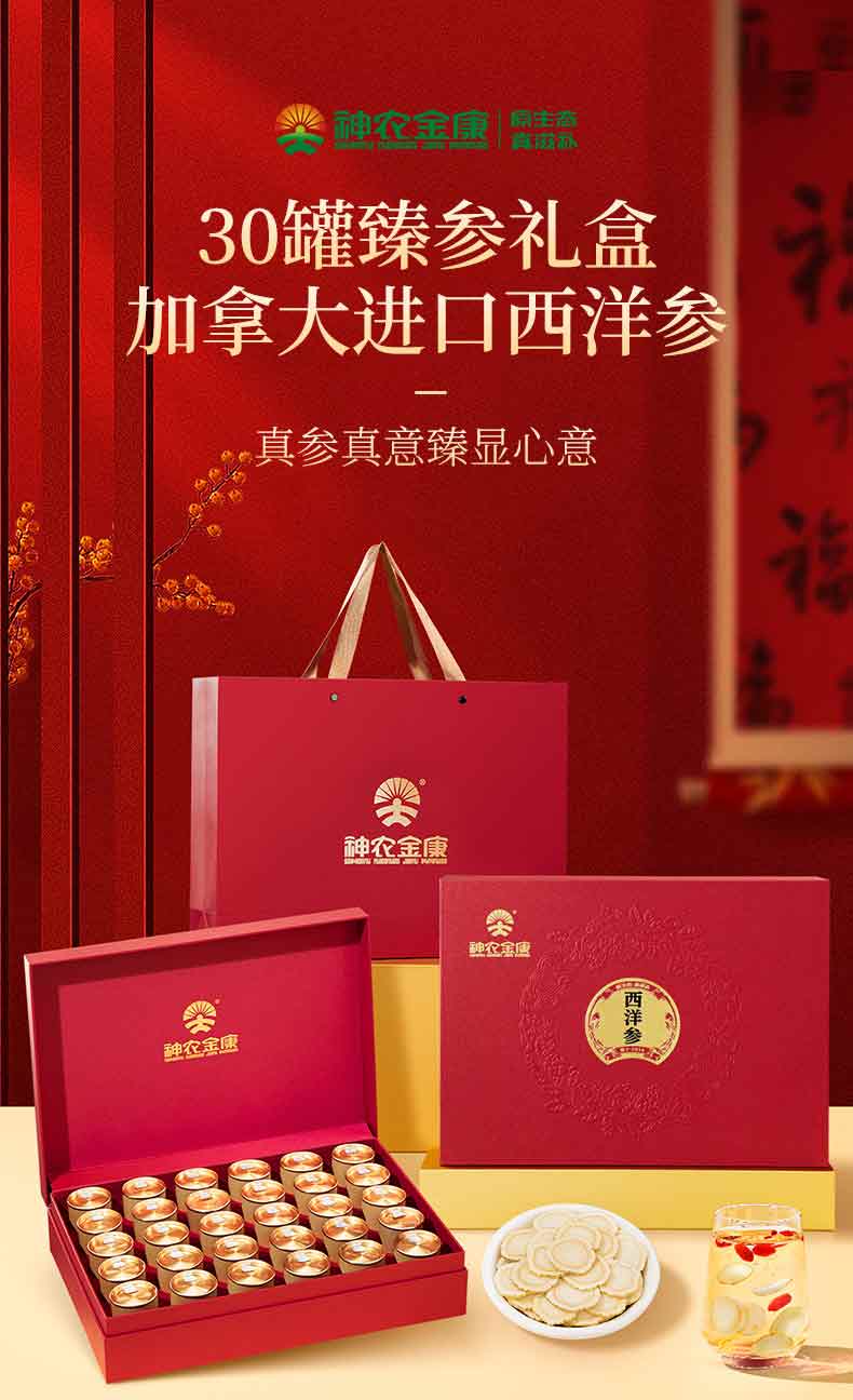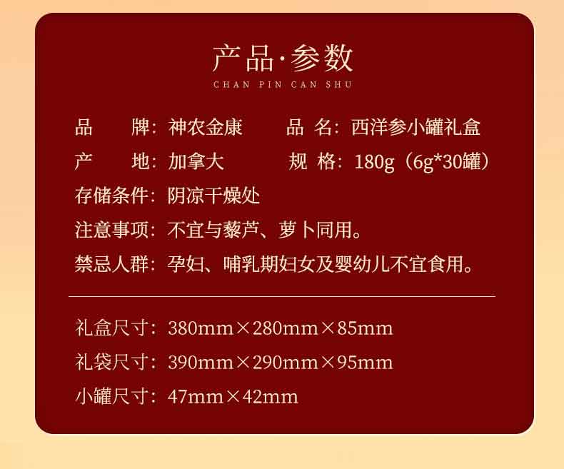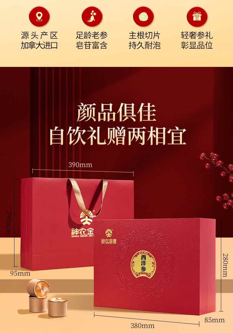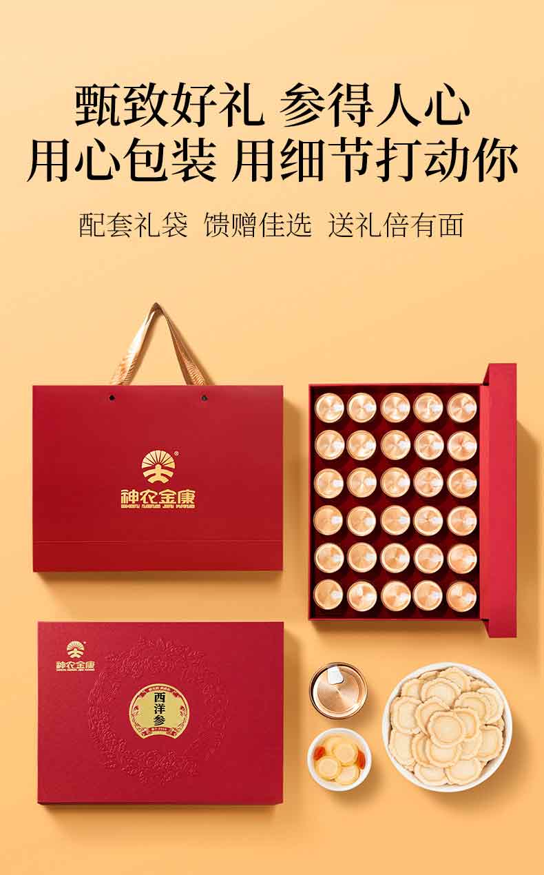 神农金康 加拿大西洋参大片礼盒装180g(6g/罐*30)花旗参切片人参含片节日滋补营养品送礼父母长辈家长亲戚老年人实用过新年年货春节礼品礼盒