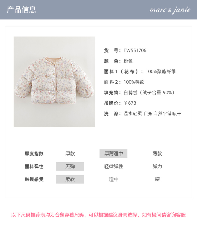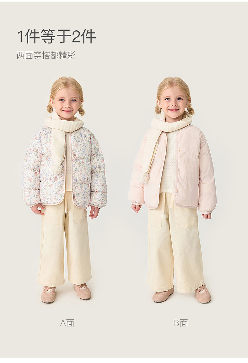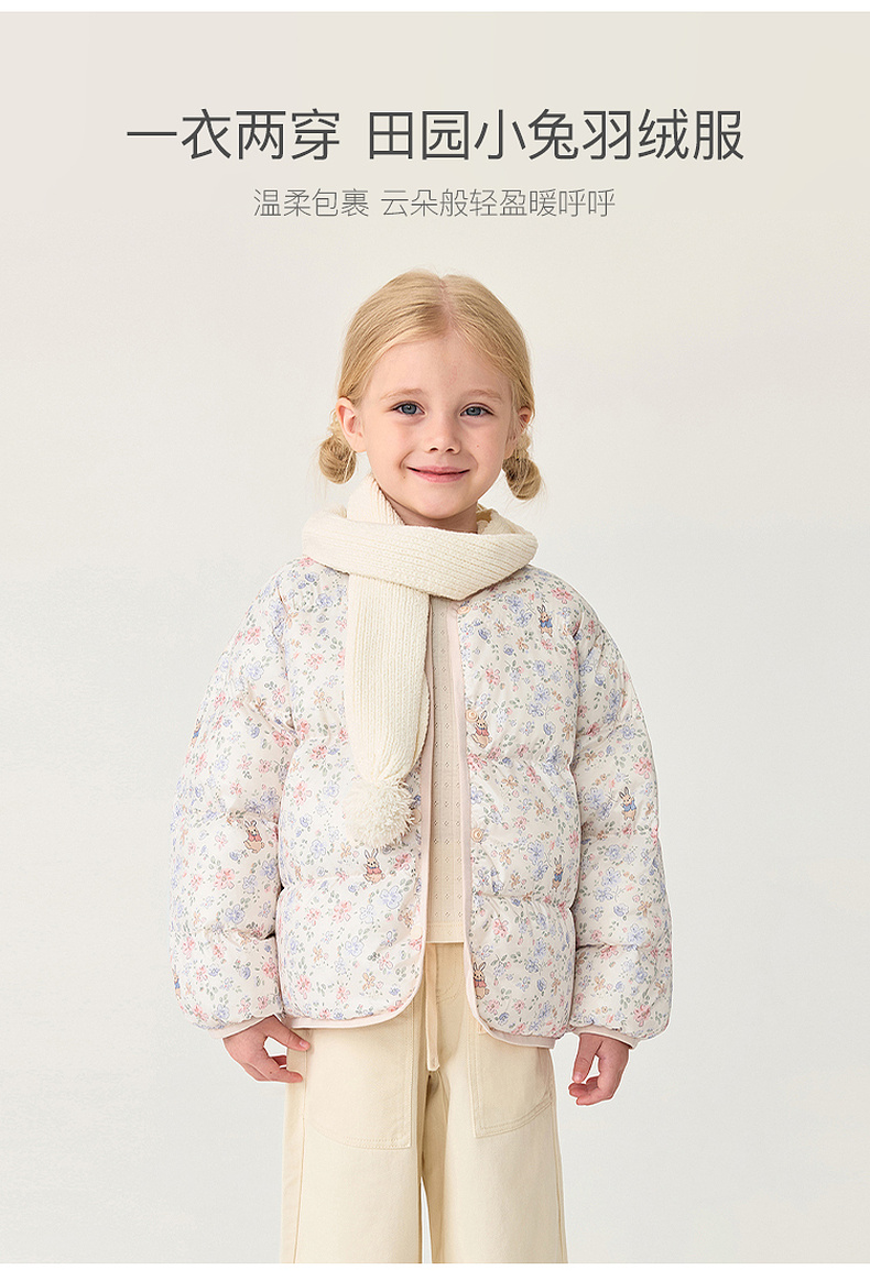 [校服神器]马克珍妮女童田园小兔超两面穿轻羽绒服秋冬新款551706
