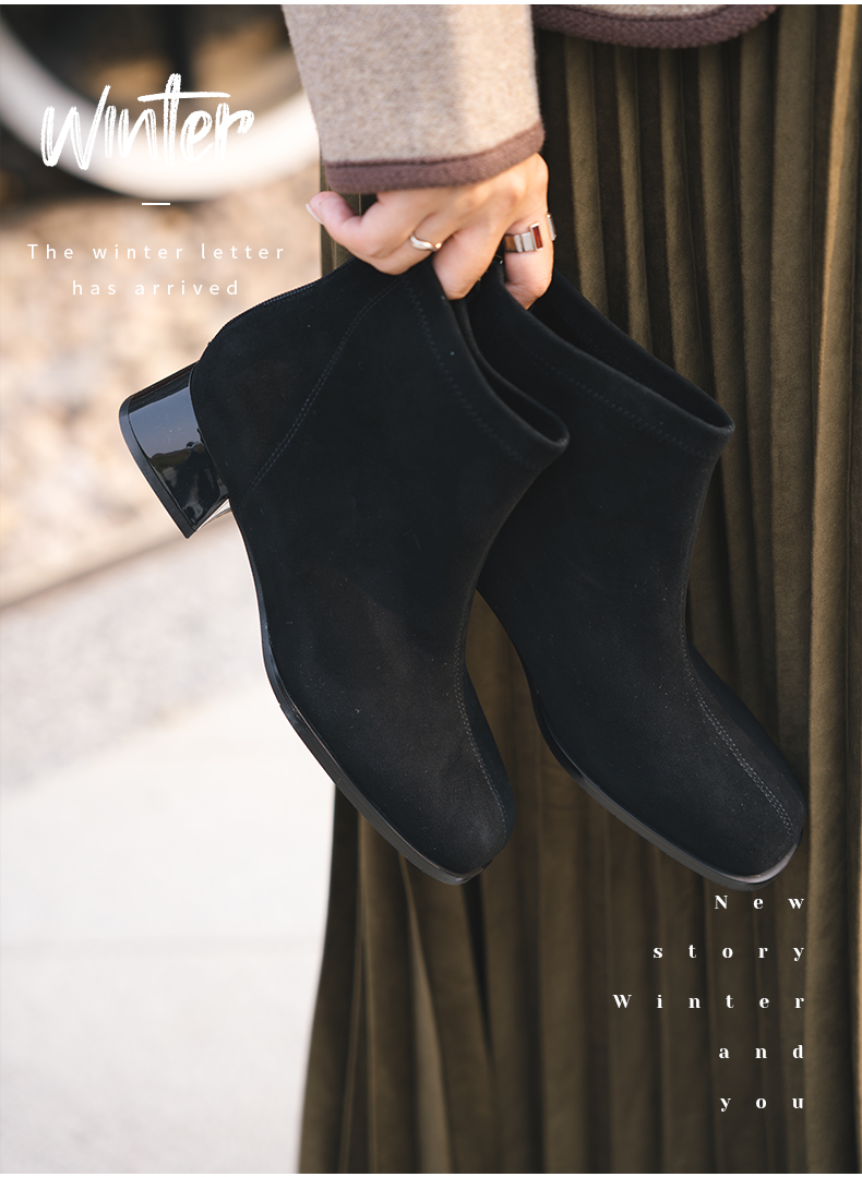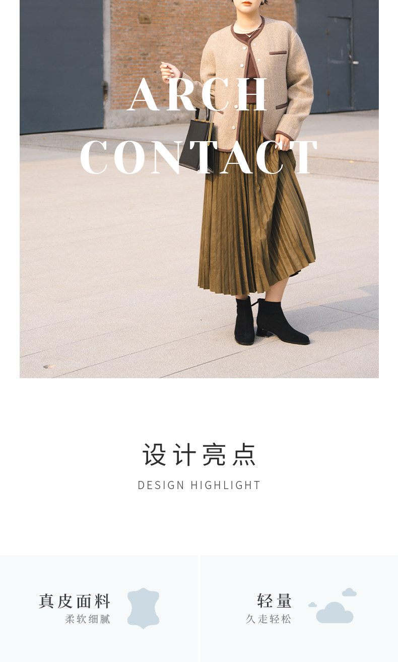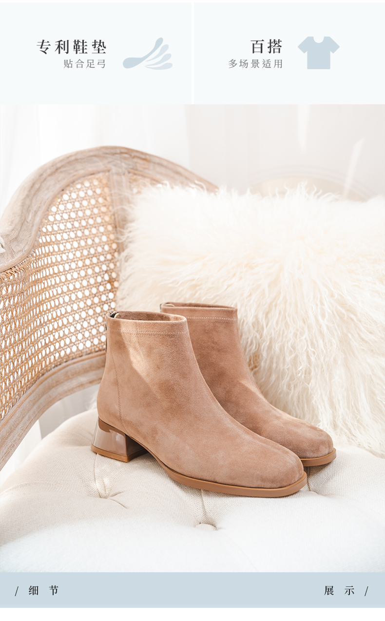 ARCH CONTACT安启美奈秋冬新品羊反绒中跟圆头女靴