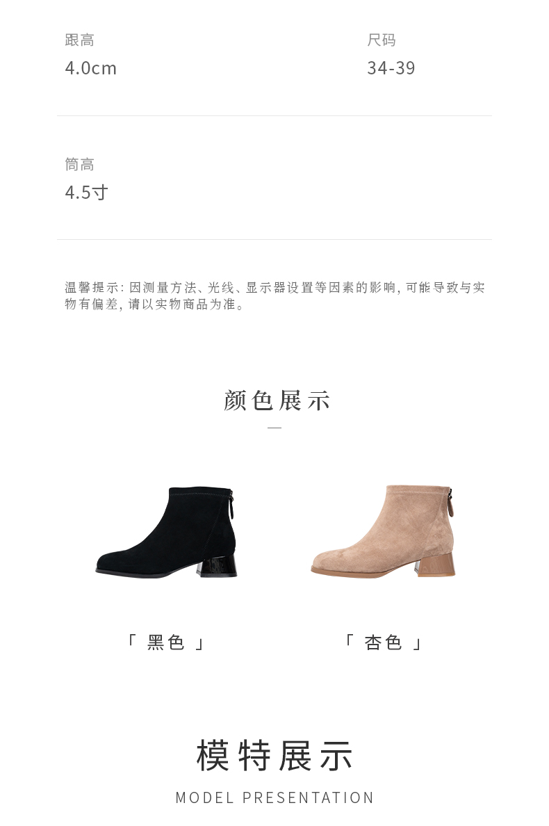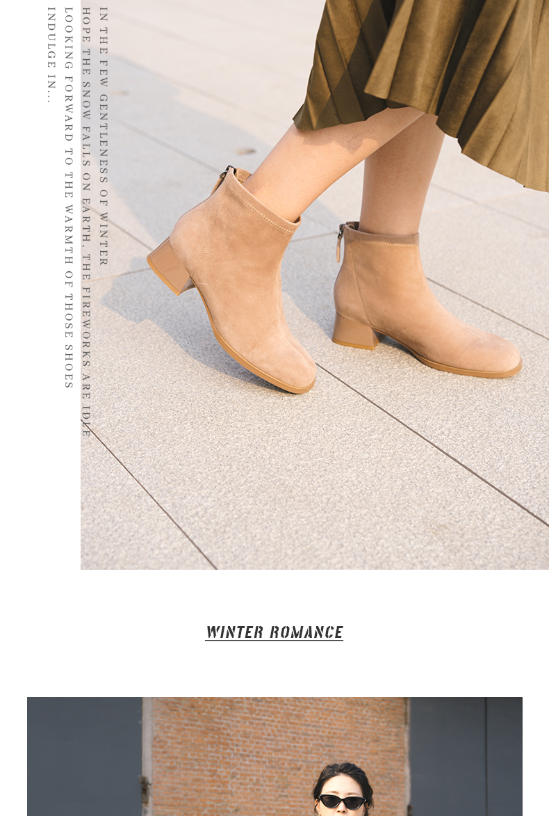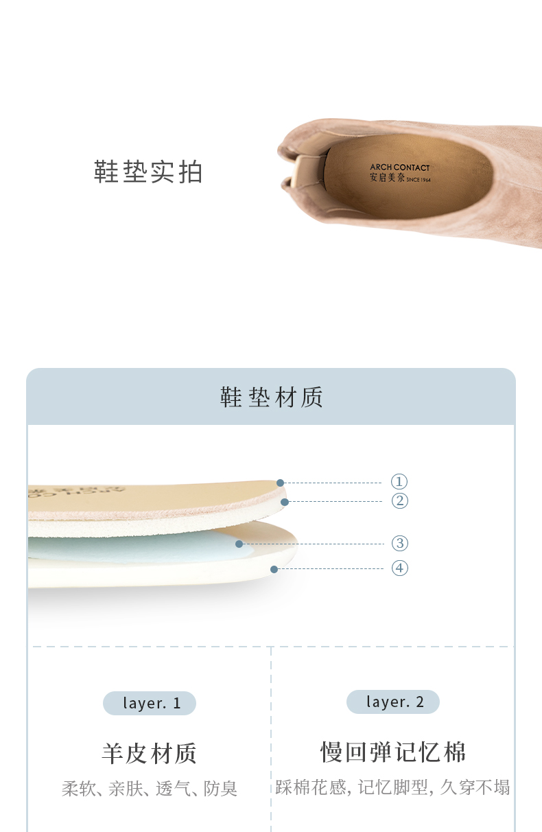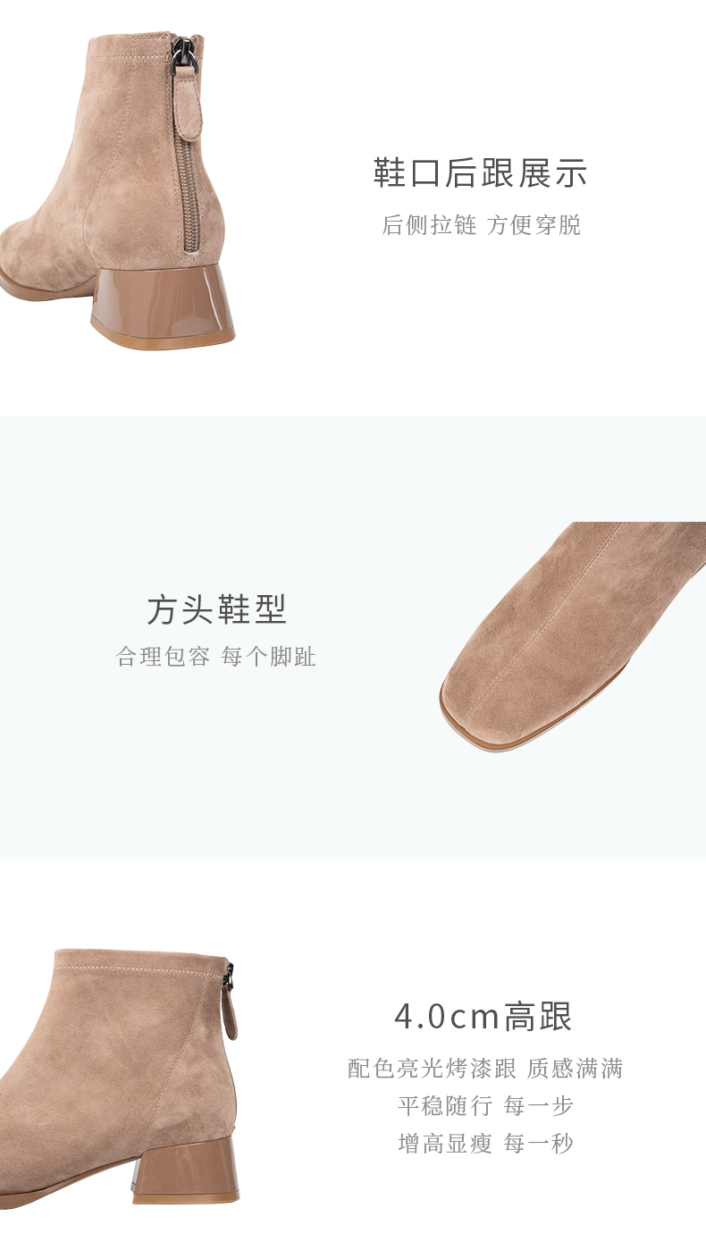 ARCH CONTACT安启美奈秋冬新品羊反绒中跟圆头女靴