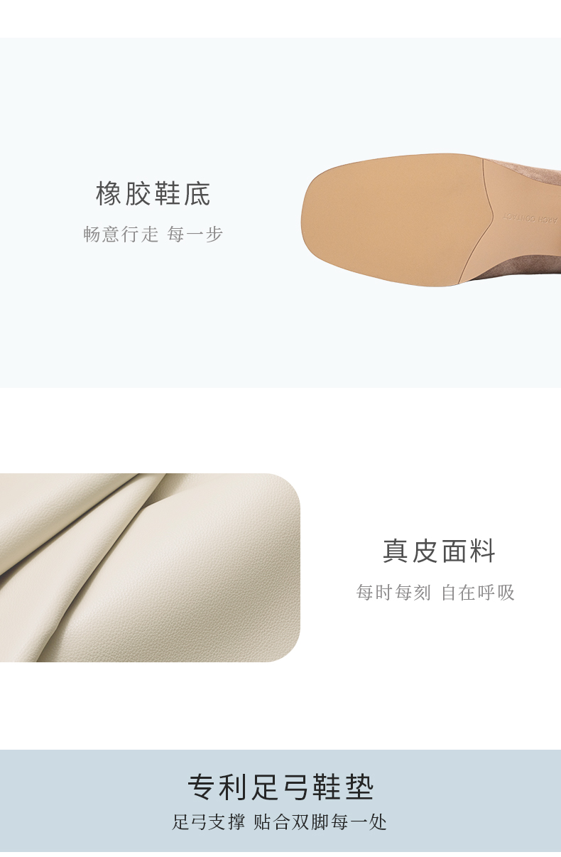 ARCHCONTACT安启美奈气垫云百搭十字花圆头方跟低跟羊皮鞋52954