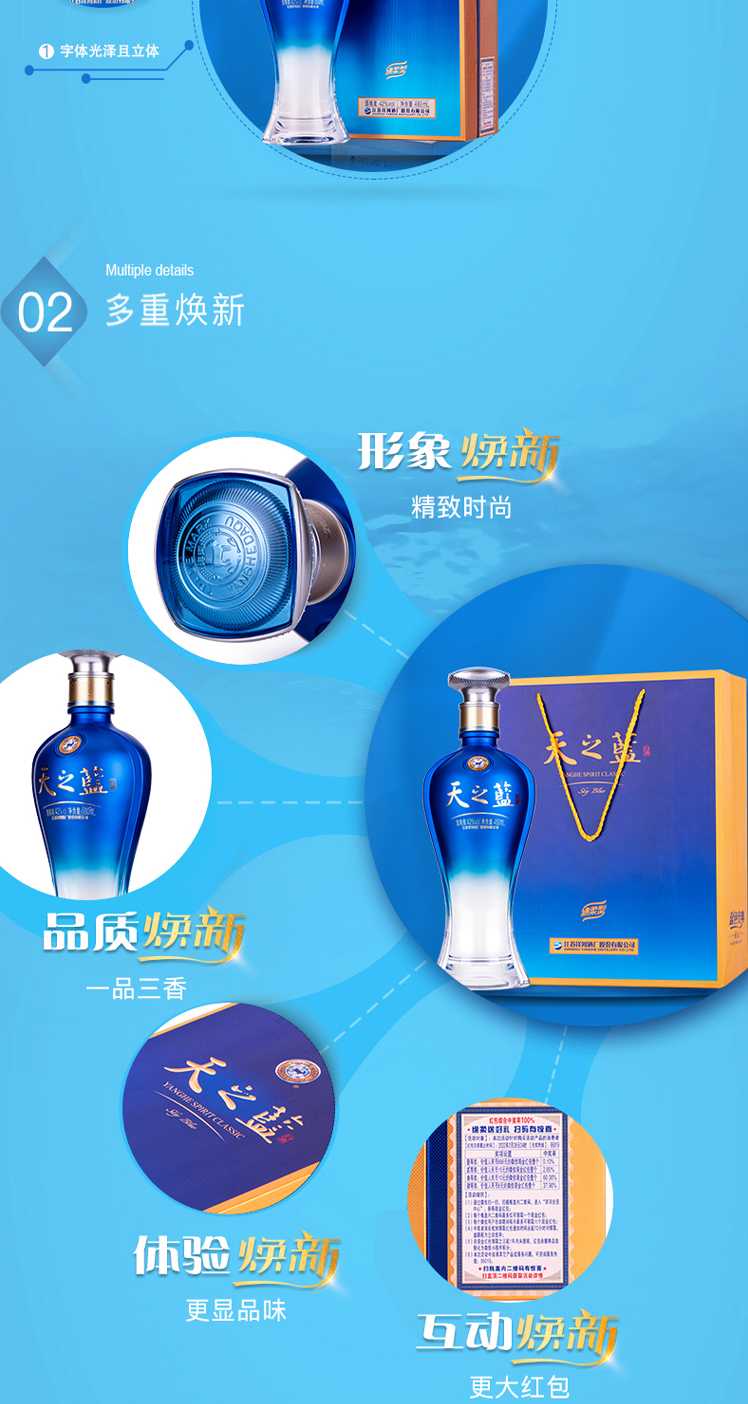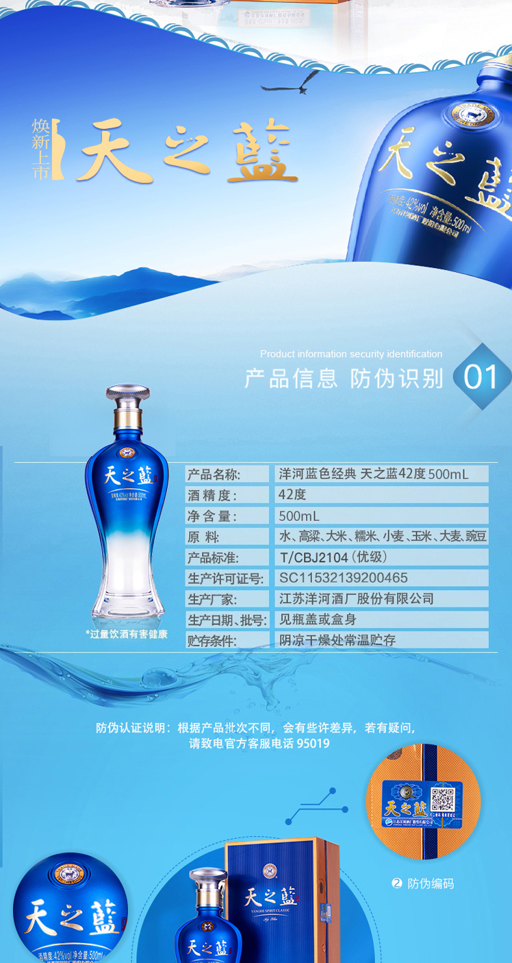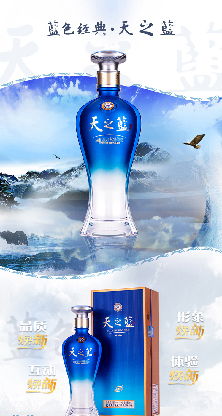 洋河蓝色经典-天之蓝-42度-浓香绵柔型500ml/1瓶纯粮白酒