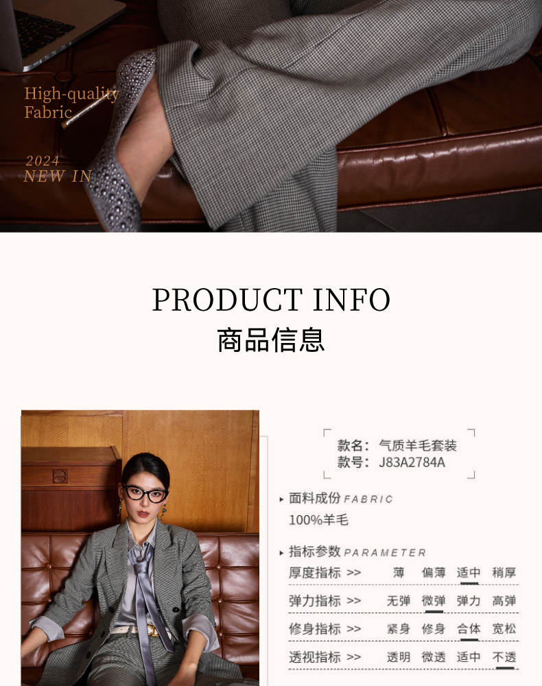 J83A2784颈袖添香春秋新款时尚气质商务正装OL修身羊毛小西装套装女J83A2784