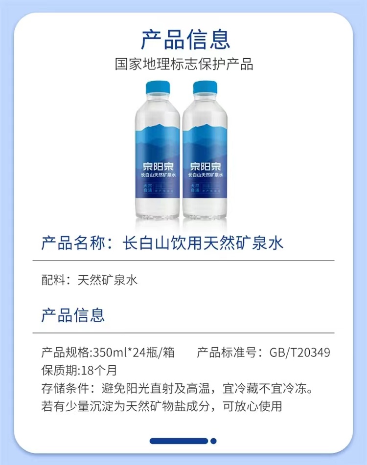 泉阳泉矿泉水/南航空厨定制 350ML*24