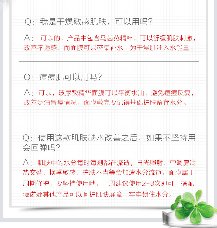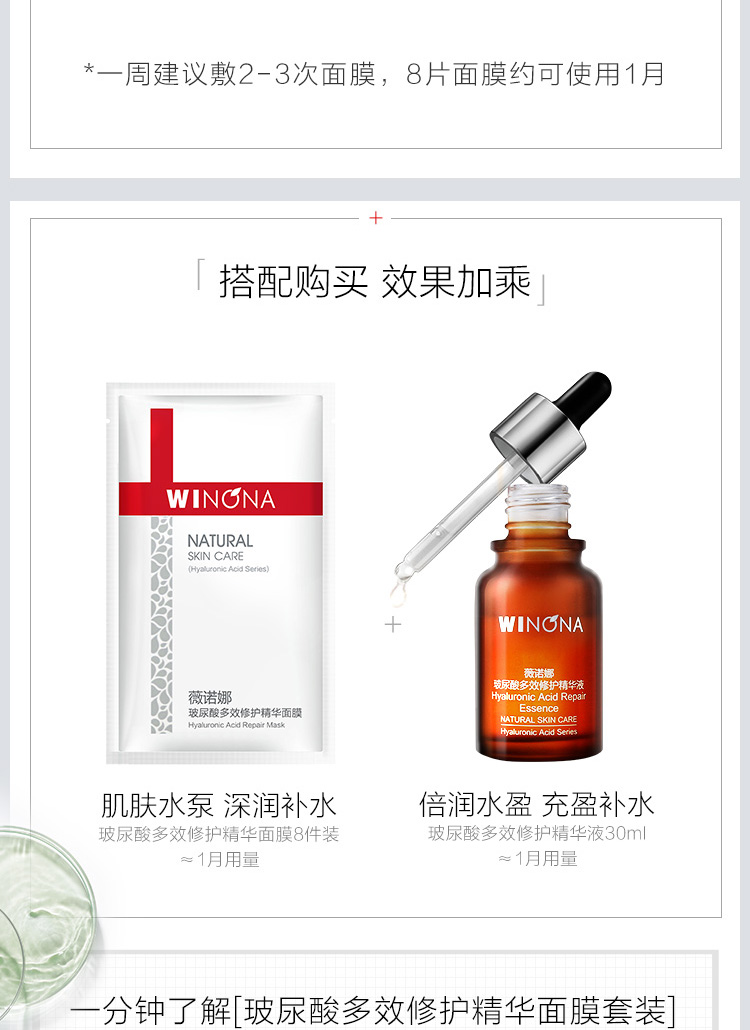 薇诺娜玻尿酸多效修护精华面膜8片装