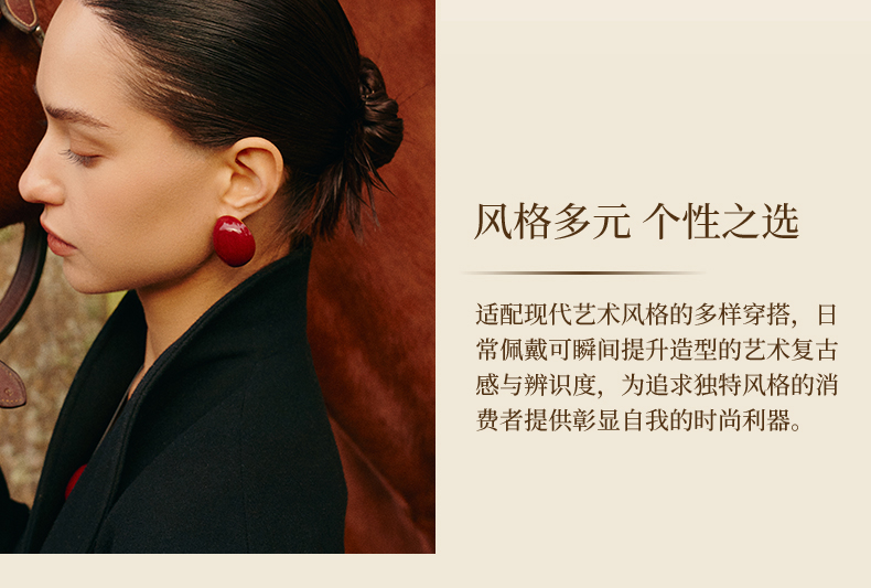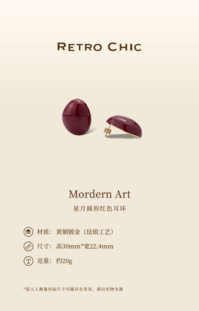 Mordern Art 现代艺术时期 | 星月圆形红色耳环+项链套装