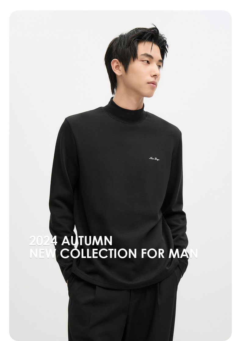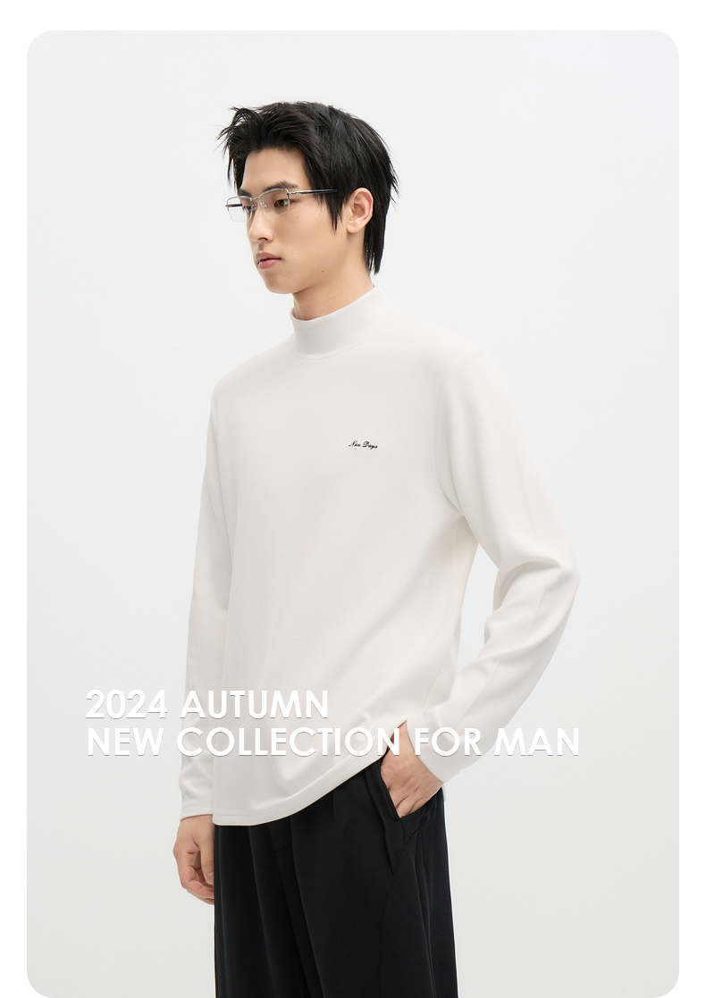 GXG男装 半高领长袖T恤保暖舒适打底 24年秋季热卖#G24D343010