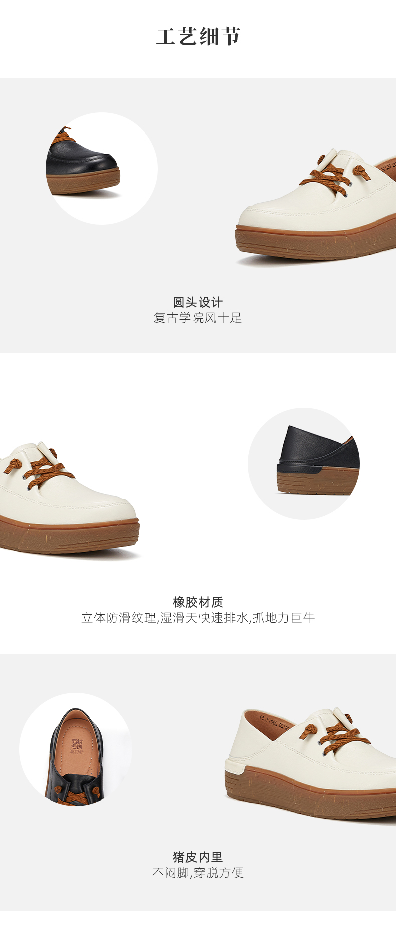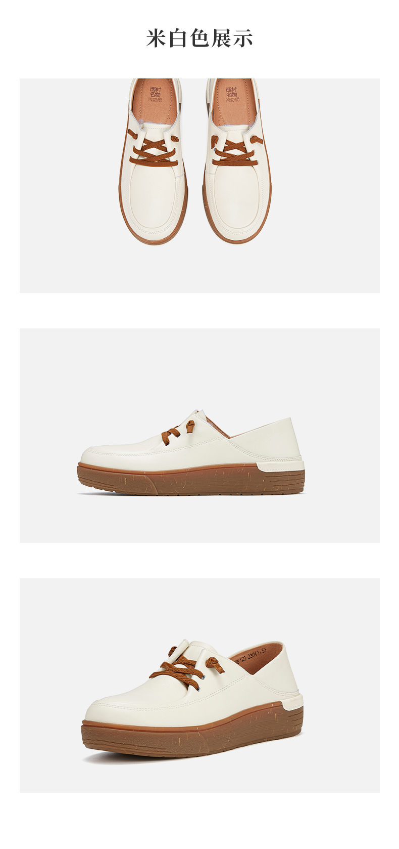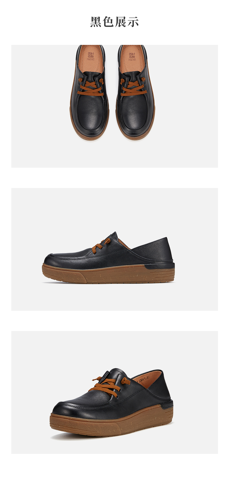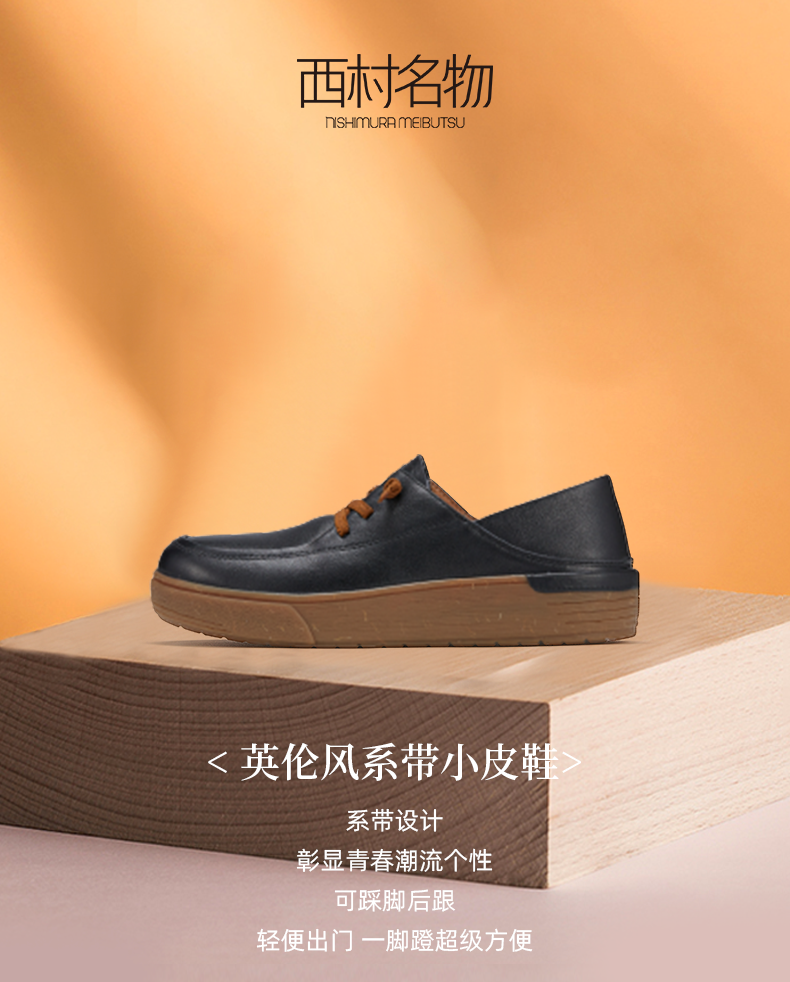 西村名物2023秋季新品英伦风系带小皮鞋轻便舒适宽脚一脚蹬X23CM35281