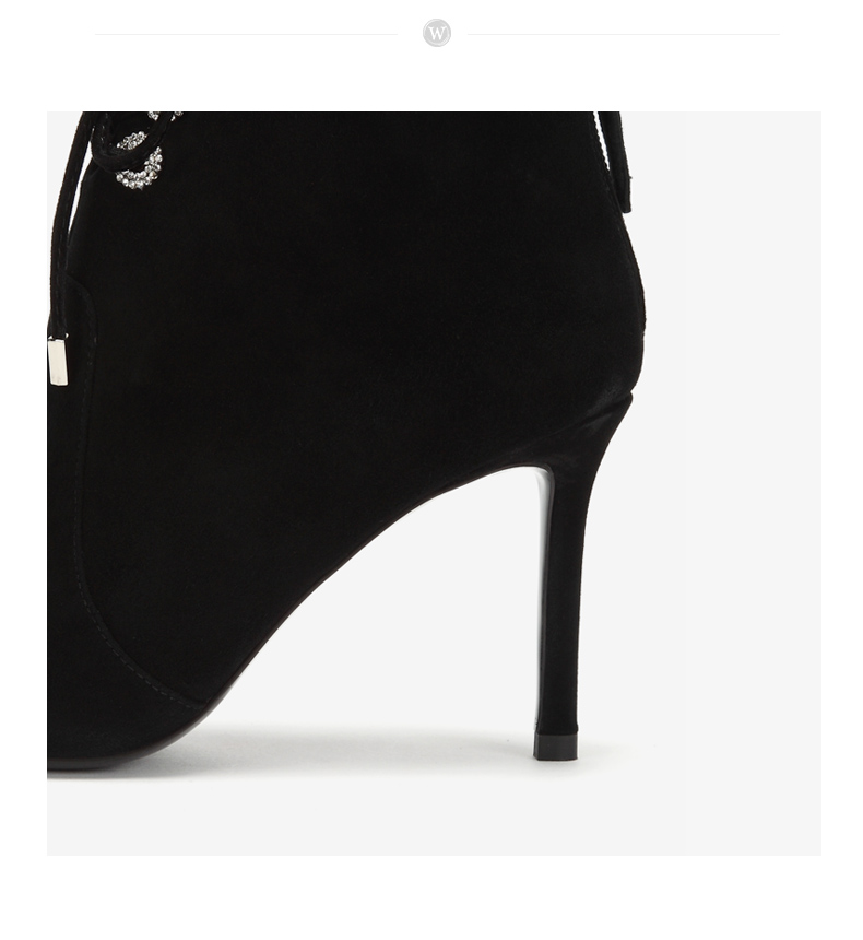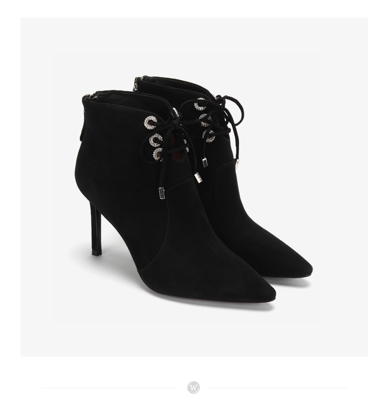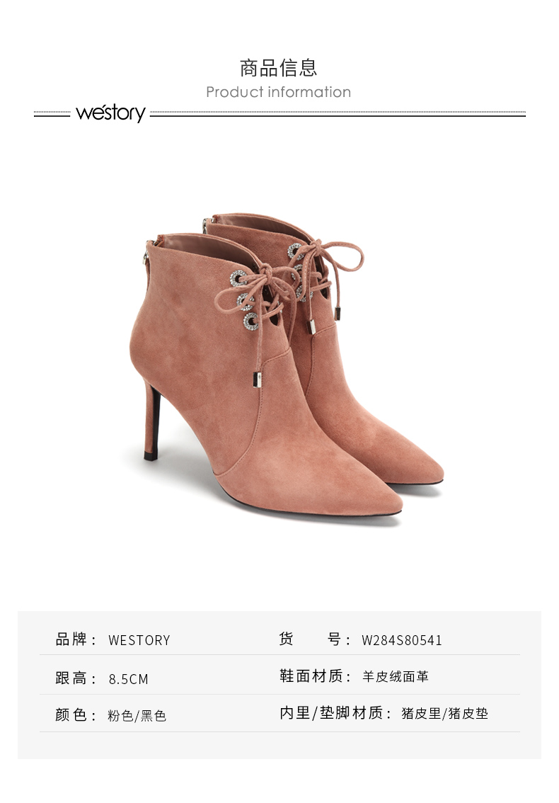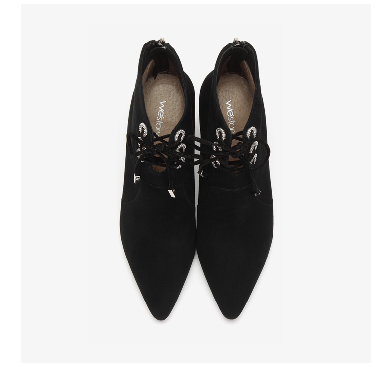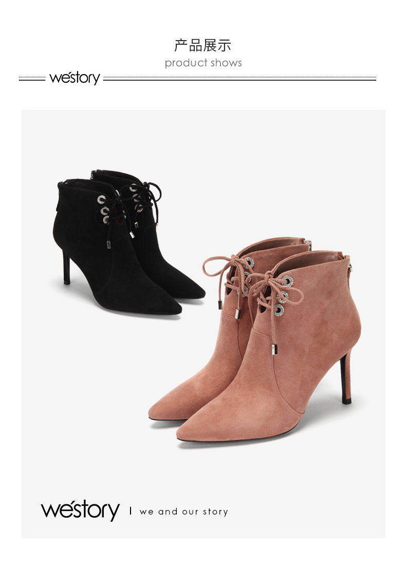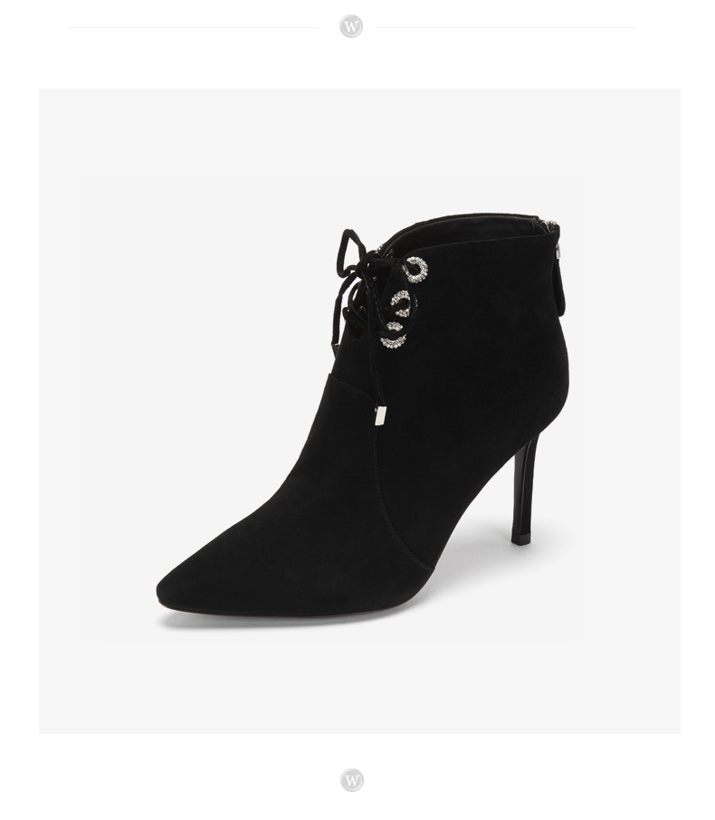 westory商场同款冬季绒面系带时尚短靴尖头细跟女靴子高跟鞋W284S80541