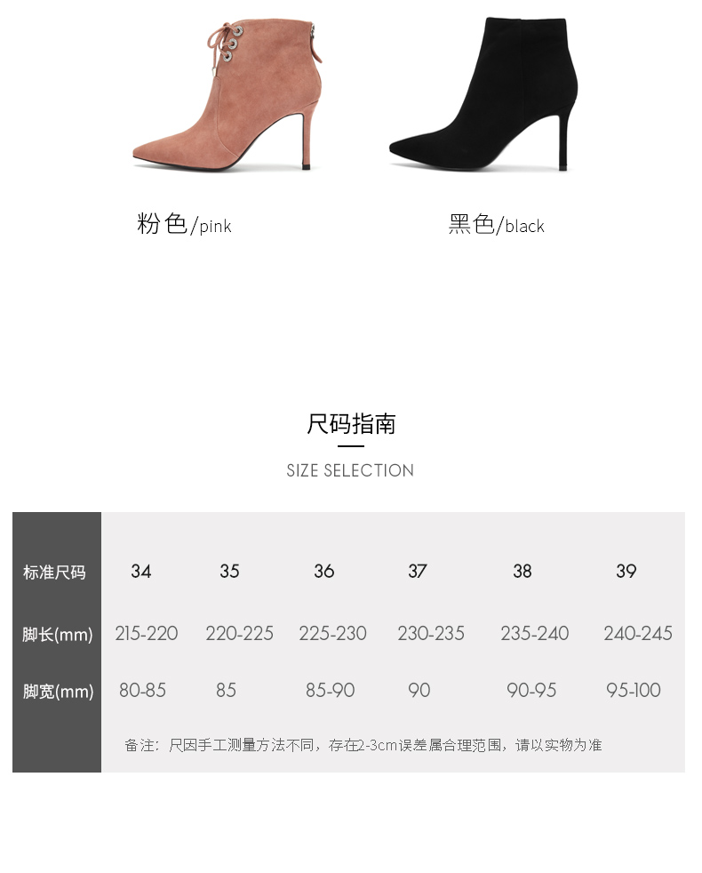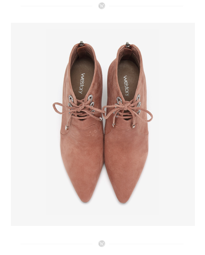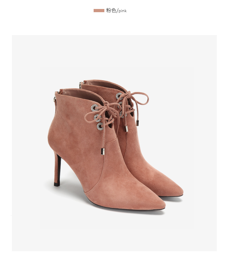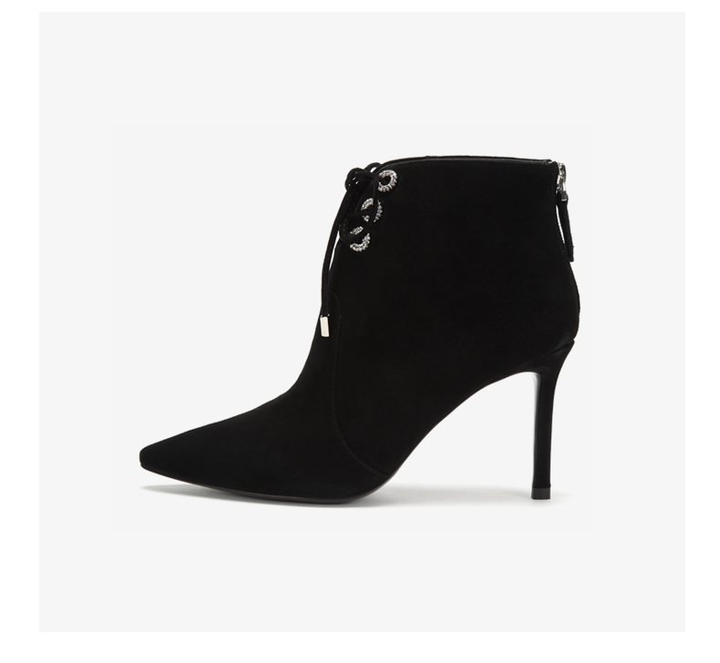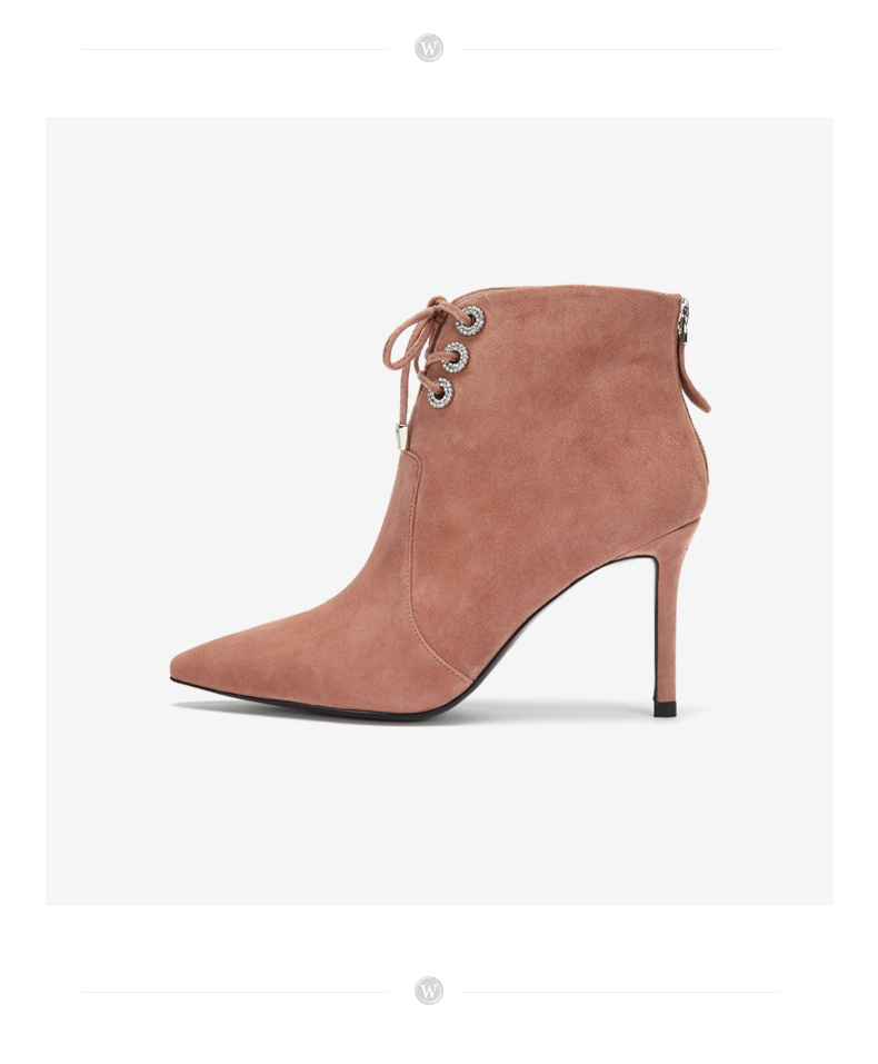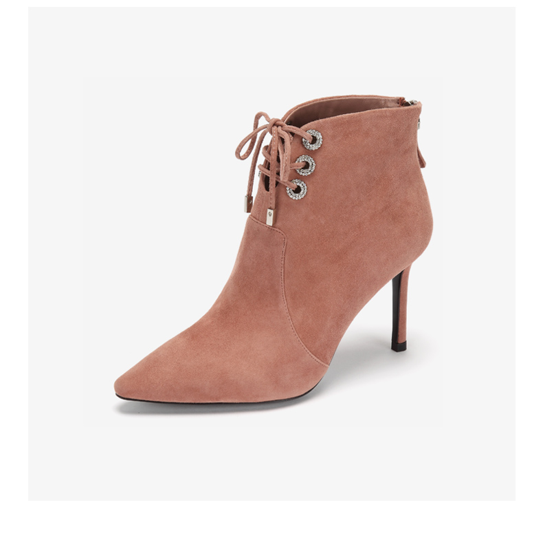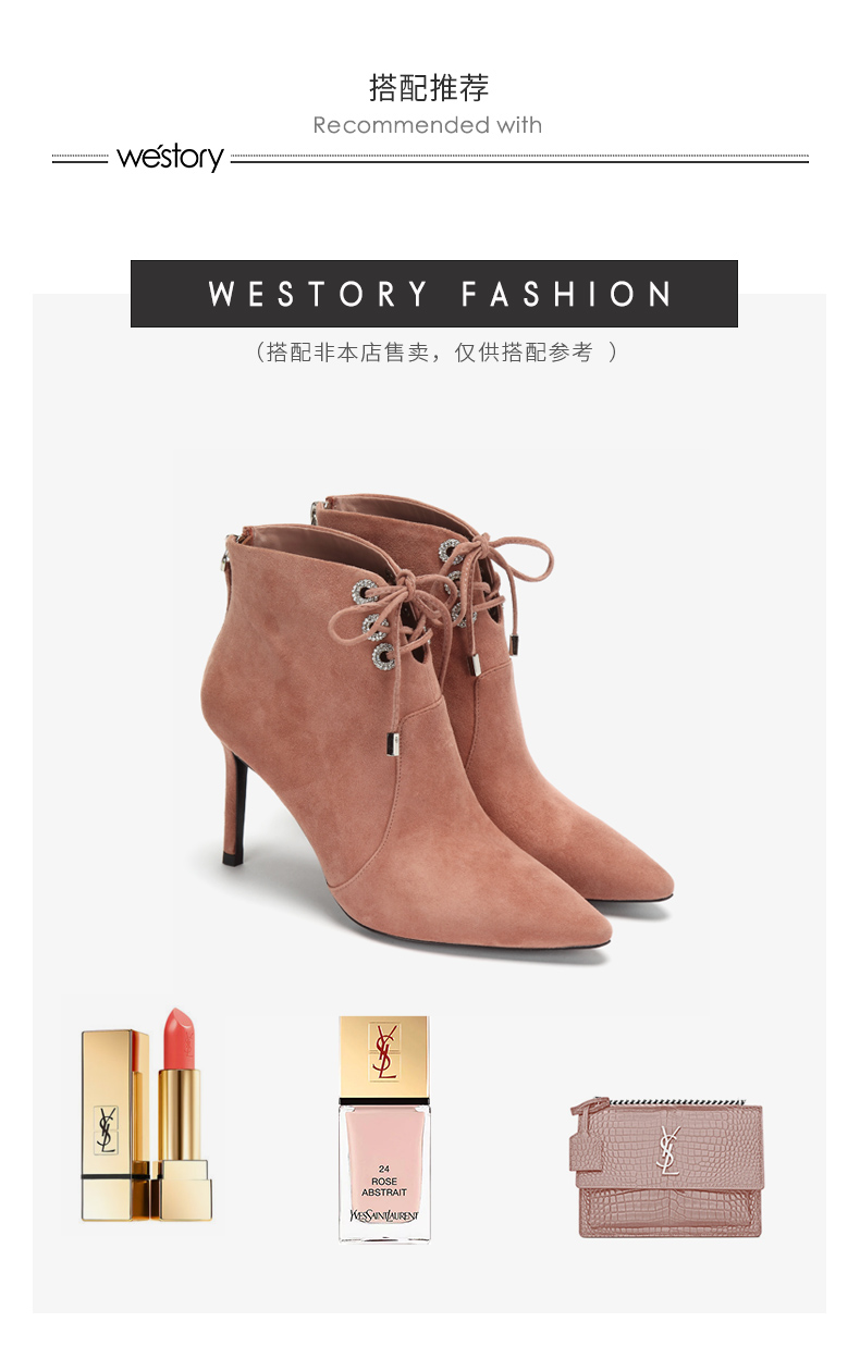 westory商场同款冬季绒面系带时尚短靴尖头细跟女靴子高跟鞋W284S80541