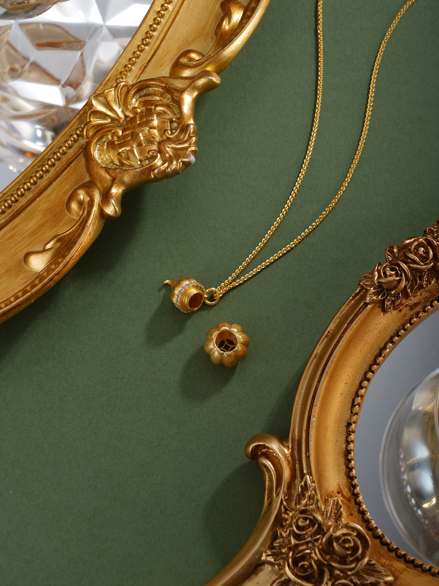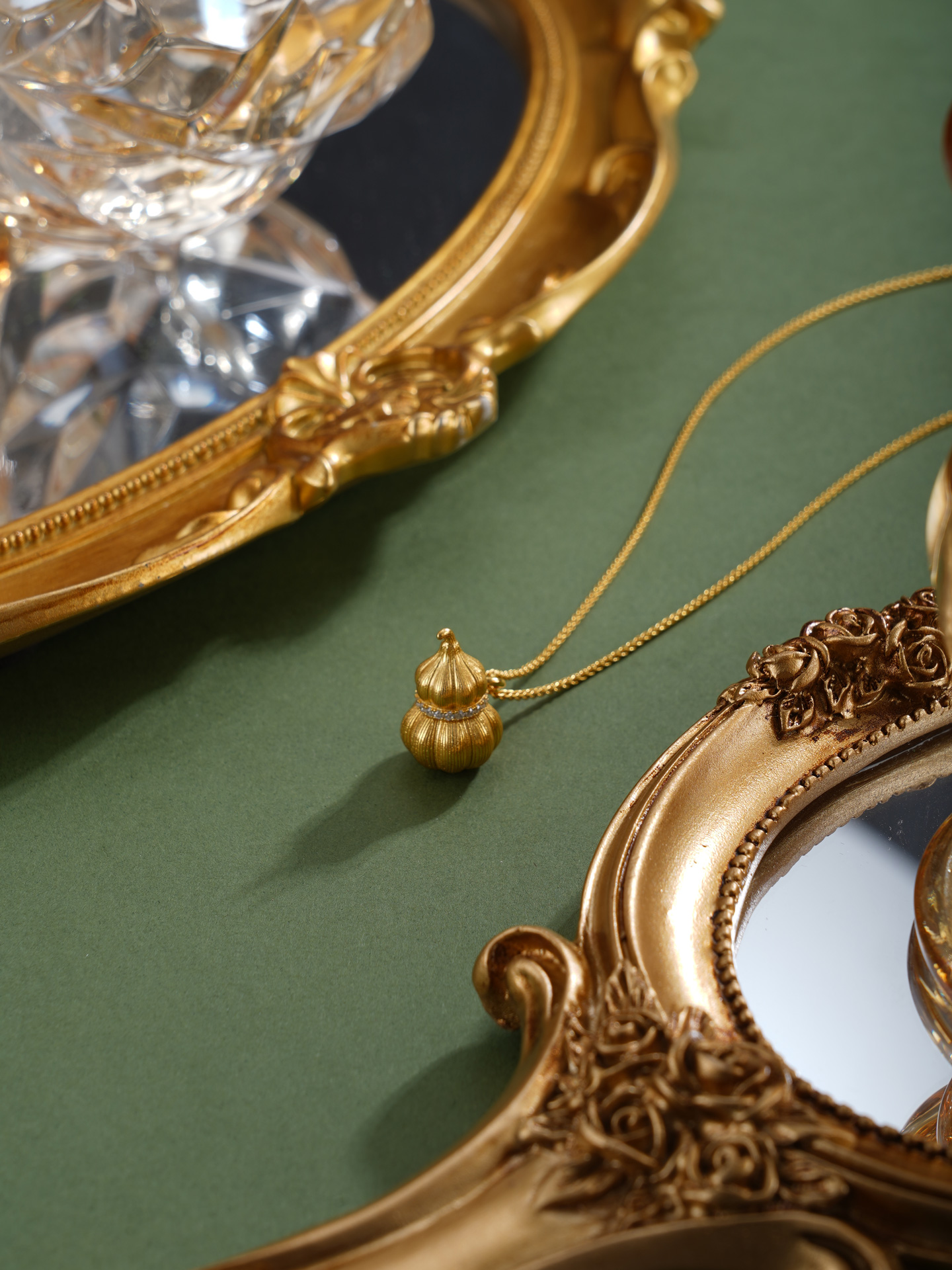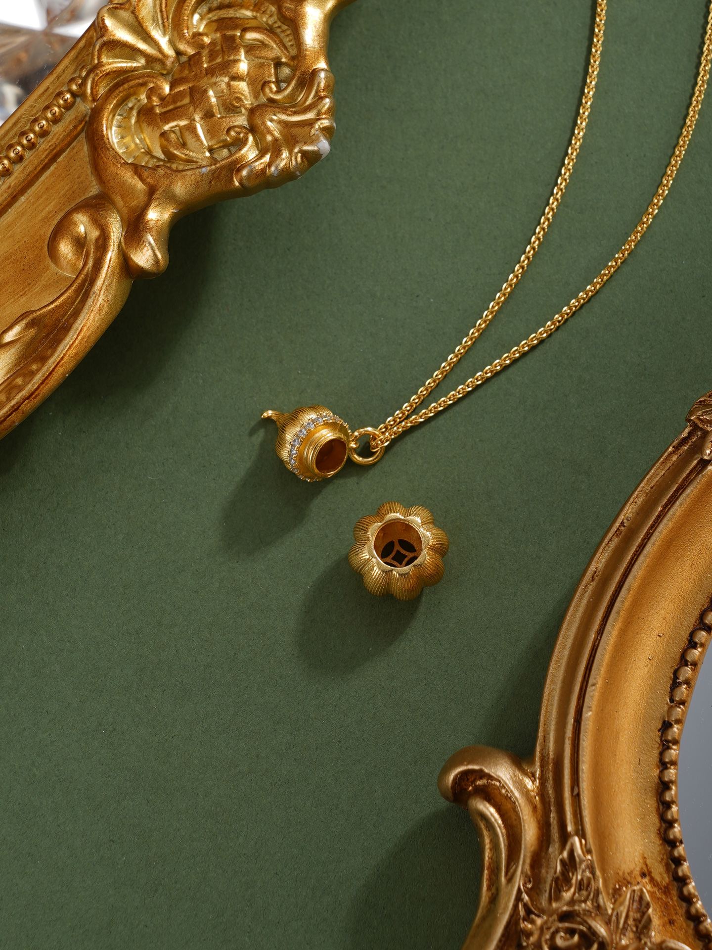 【寓意】:以纯银精工打造可开合葫芦吊坠。葫芦谐音“福禄”,开合间喻示“福禄双全”;内藏空间象征“宝藏”,寄寓福运常开,宝藏随行。