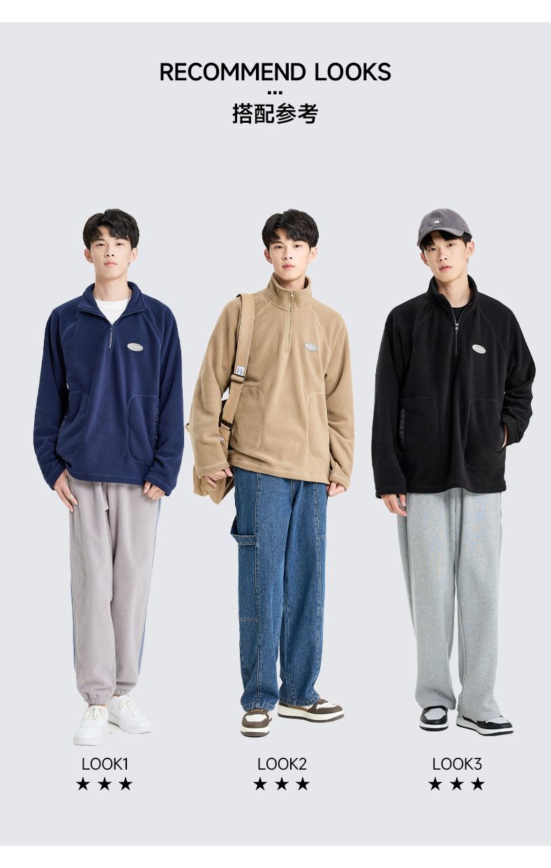 回力抓绒男女摇粒绒外套半开衫拉链卫衣春季上衣情侣美式保暖外套