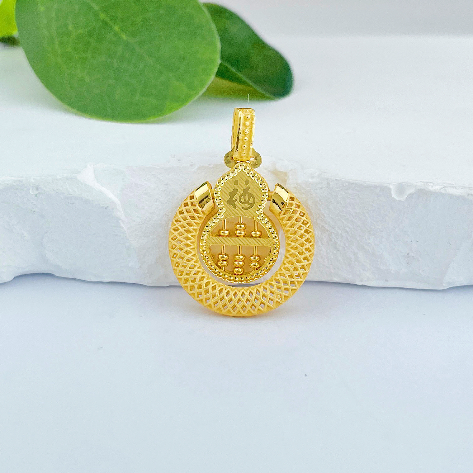 【限时克减150元】足金999.9 #招财纳福 #葫芦 镂空双面福字葫芦算盘招财纳福圆环算盘吊坠(算盘珠可动)(AF150DZ00034)(预售产品下单后不退款不退货不换货不补差价)