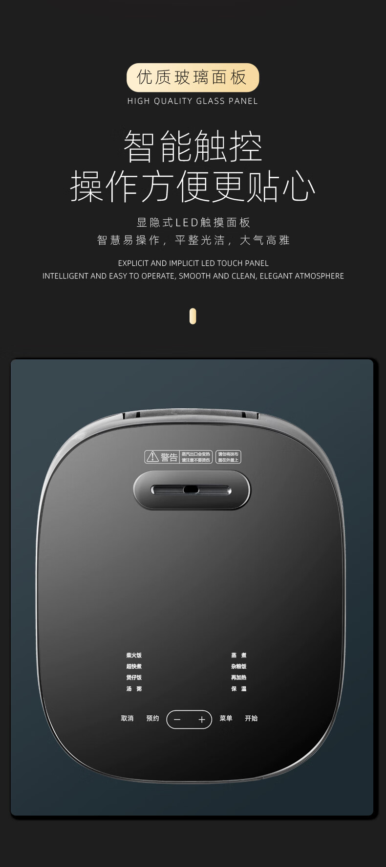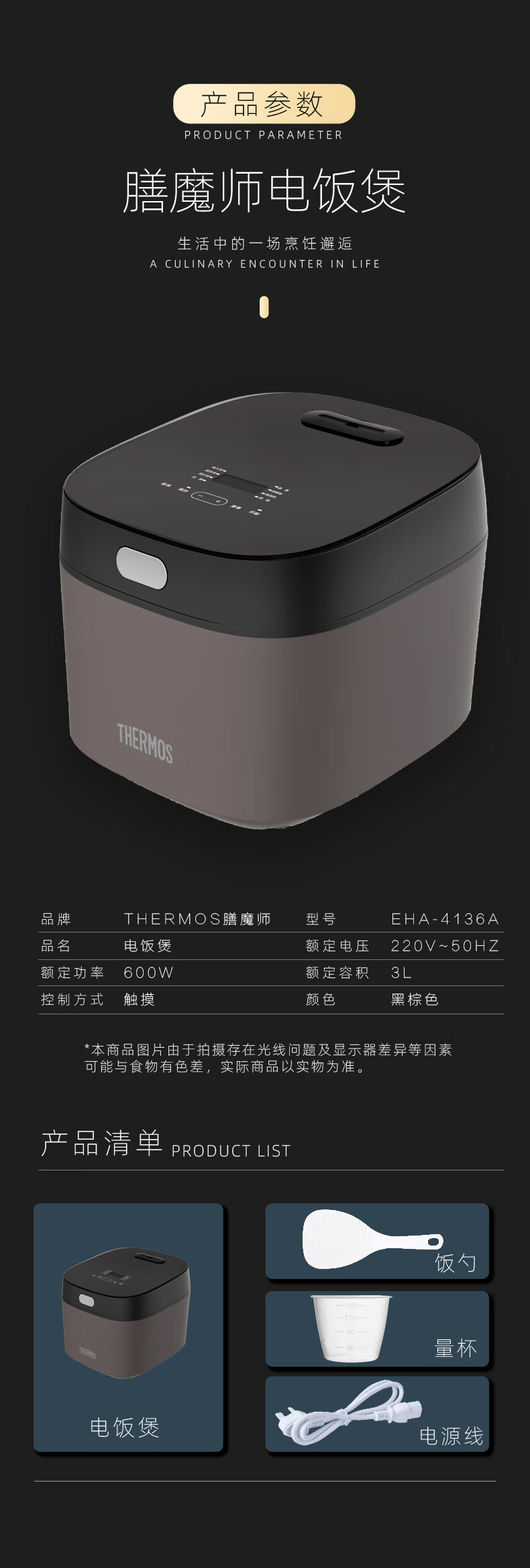 膳魔师(THERMOS)电饭煲多功能预约家用小型电饭锅快速煮饭触屏防粘涂层精铁内胆电饭锅 EHA-4136A 黑棕色 3L