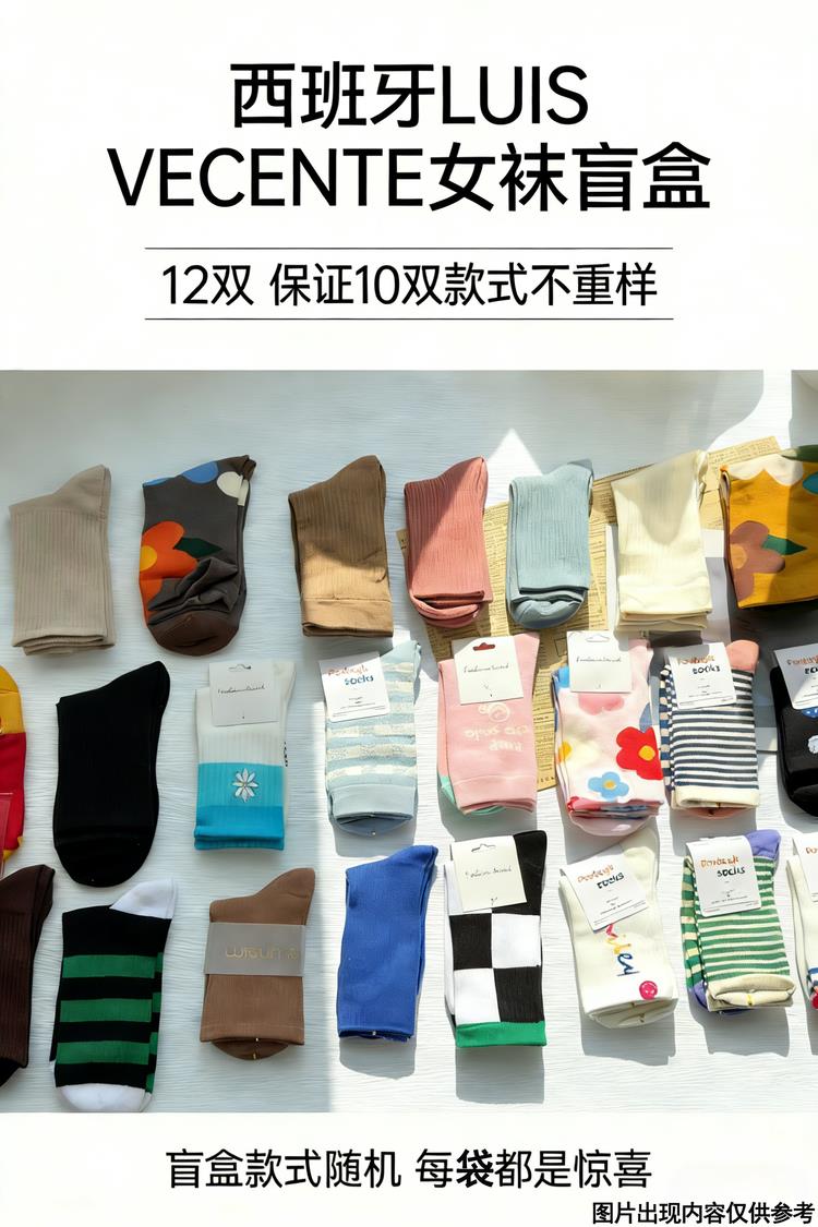 29.9元到手12双❗【西班牙LUIS VECENTE秋冬女士棉袜福袋】几百个款式随机发❗保证10双款式不重样