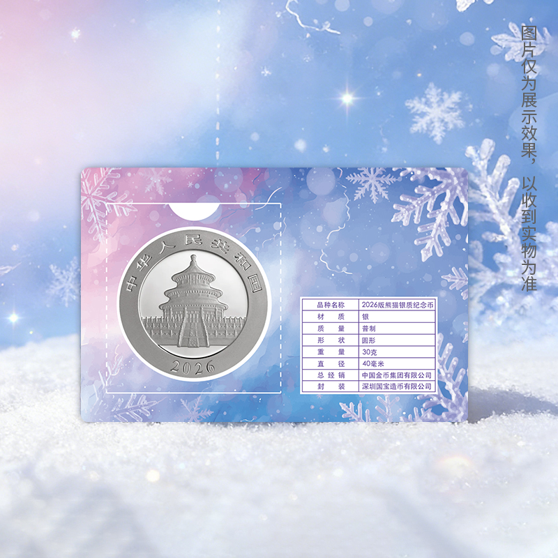 【冬季限定】2026年熊猫30克银币 山雪霁梅 梅雪迎新 熊猫贺卡 足银999