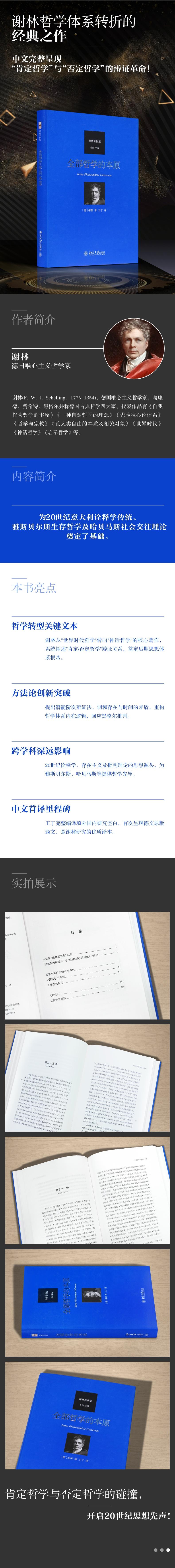 本卷由三个文本构成:《哲学作为科学的自然本性》《全部哲学的本原》《自然进程阐述》,其中前两个文本构成了谢林著名的“埃尔朗根讲座”,第三个文本则是德文本《谢林全集》中的一篇重要逸文,主题符合,故与前两个文本编为一卷。 “埃尔朗根讲座”是谢林研究目前的重要经典,也是谢林哲学发展目前的重要文本。它上承“世界时代哲学”,下启“神话哲学”和“启示哲学”,尤其对“世界时代哲学”中所提出的潜能阶次辩证法问题、存在问题、时间问题等做了总结性的阐发,号称“最后的世界时代哲学文本”,对研究谢林哲学至关重要。在哲学问题上,它回应了人类的意识和哲学的内在关系、体系的建构和展开、哲学史的断续等问题,同时回应了黑格尔的批判。在思想影响上,它开启了20世纪的意大利解释学传统,构成了解释学都灵学派的基础文本,也影响了雅斯贝尔斯的生存哲学,哈贝马斯的社会交往理论等,因而具有重要的学术价值。