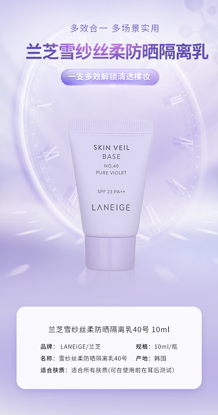 【小样】兰芝隔离40号紫10ml/102320 修色提亮水润隔离满足日常通勤需要