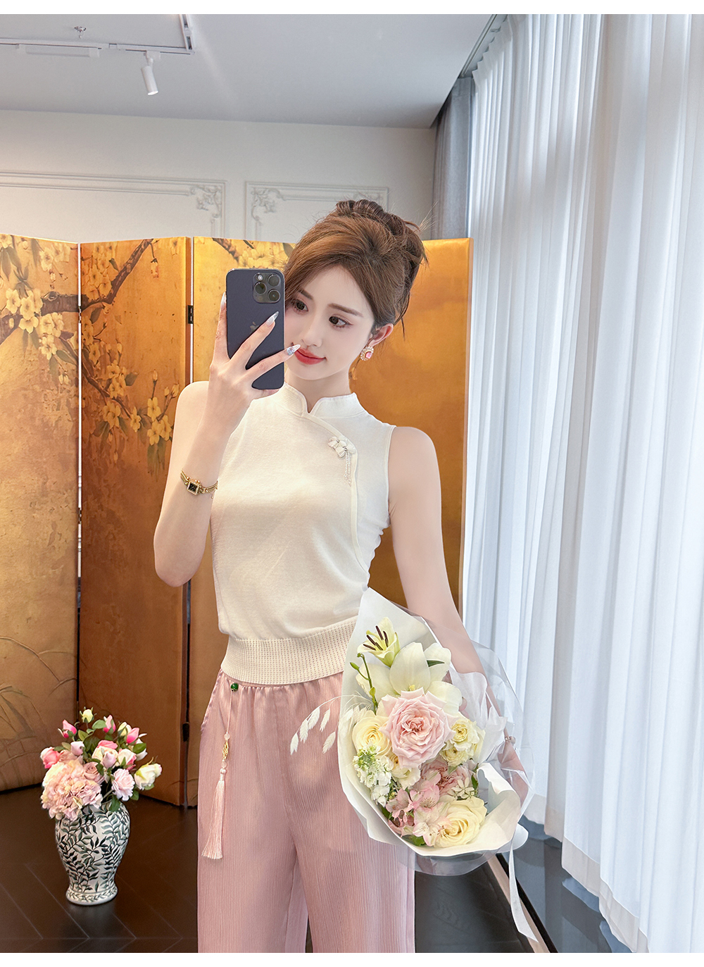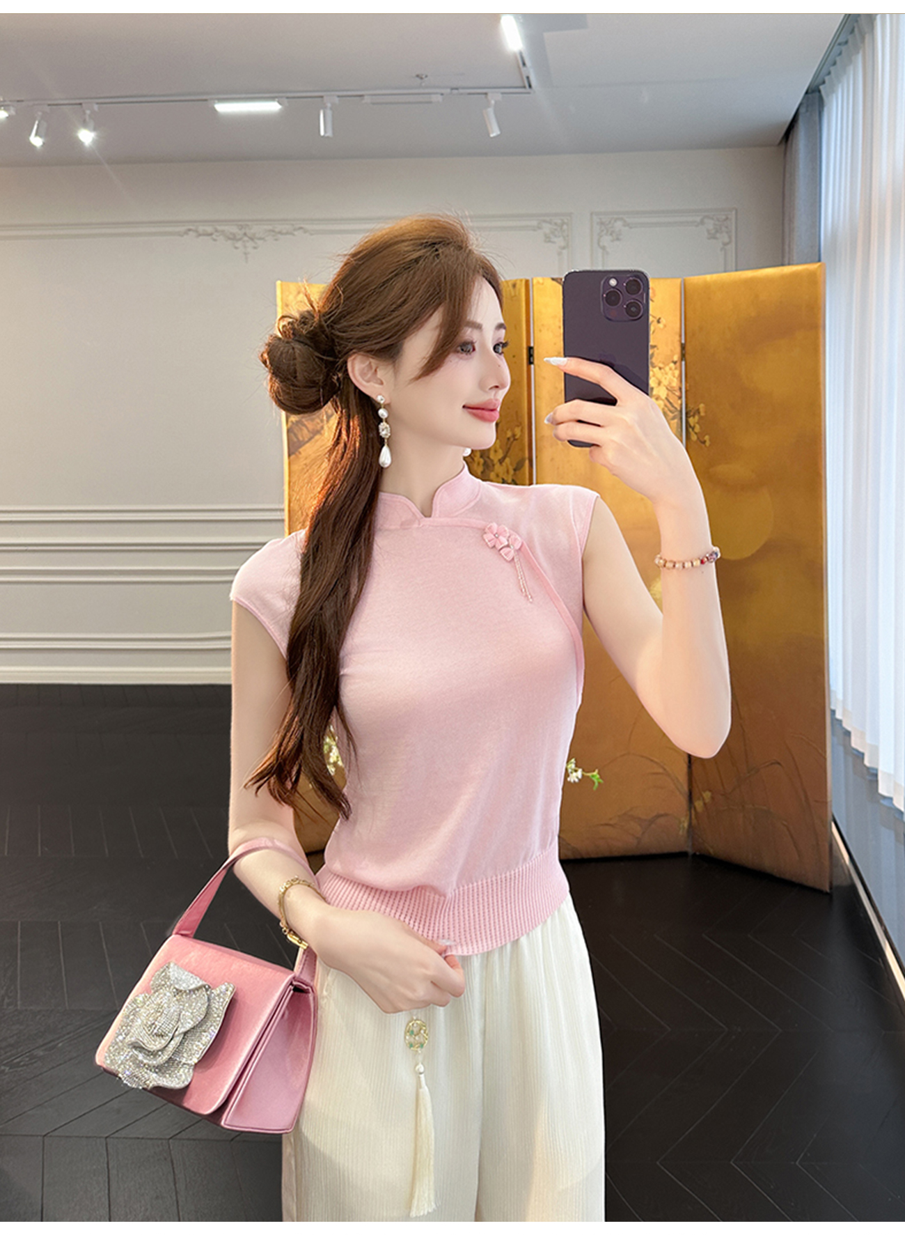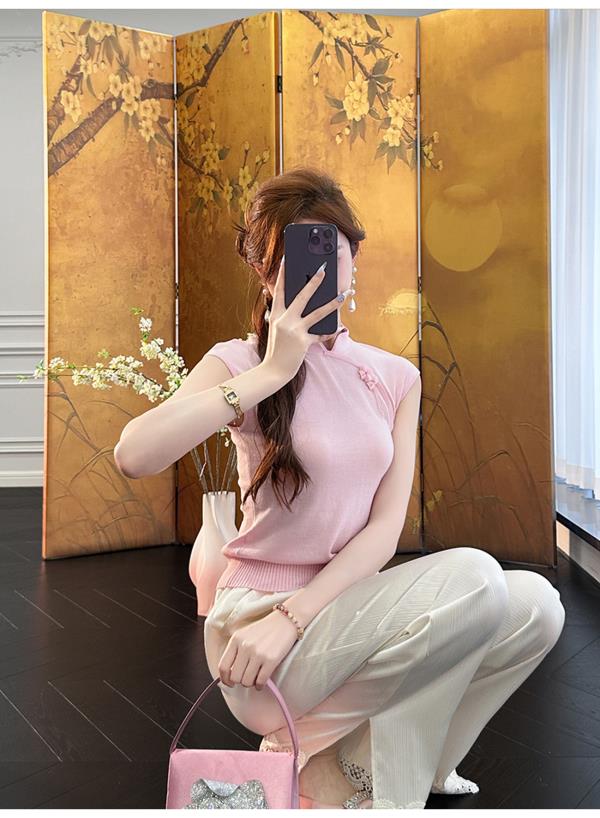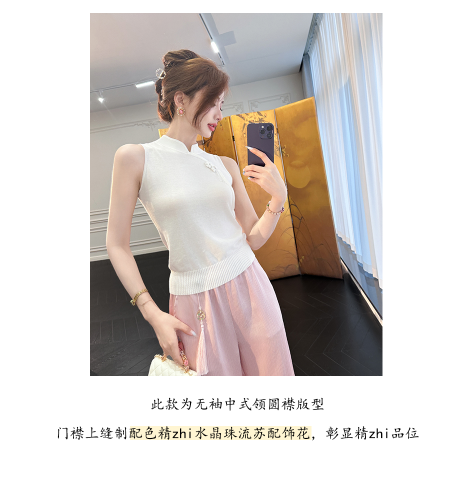 BeQueenStory【胭脂棠梨】时尚百搭雅韵国风新中式无袖上衣夏季
