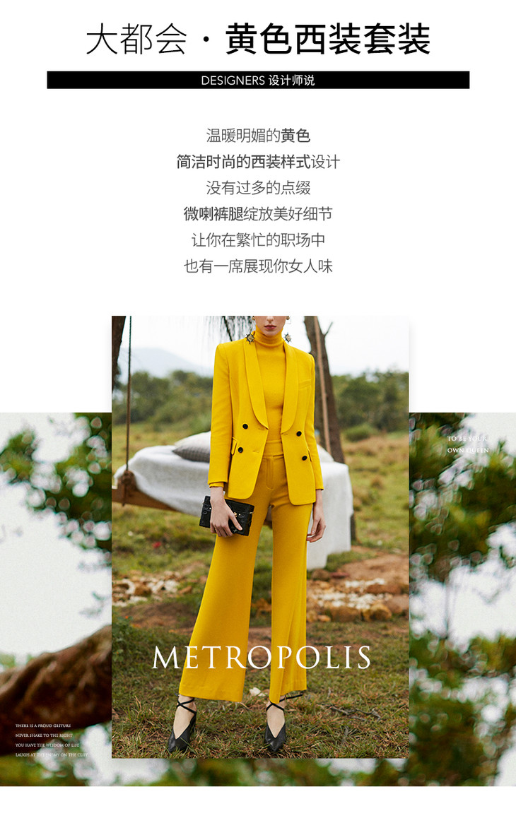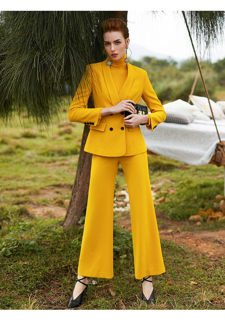 IWY/新品黄色西装大刀领双排修身立体职业套装CP9326