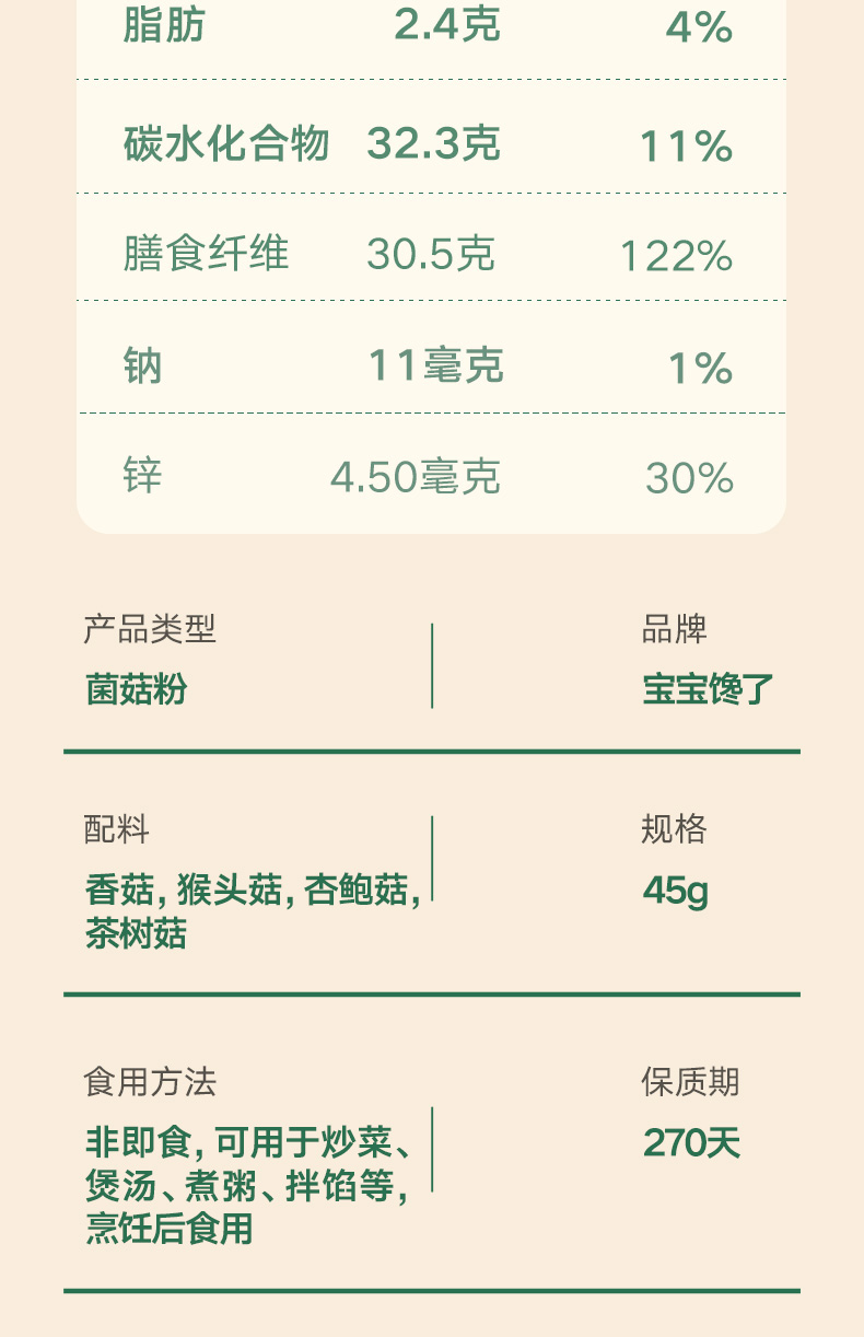 【宝宝馋了】菌菇粉 4种优质菌菇&辅食提鲜 送8月+婴幼儿食谱