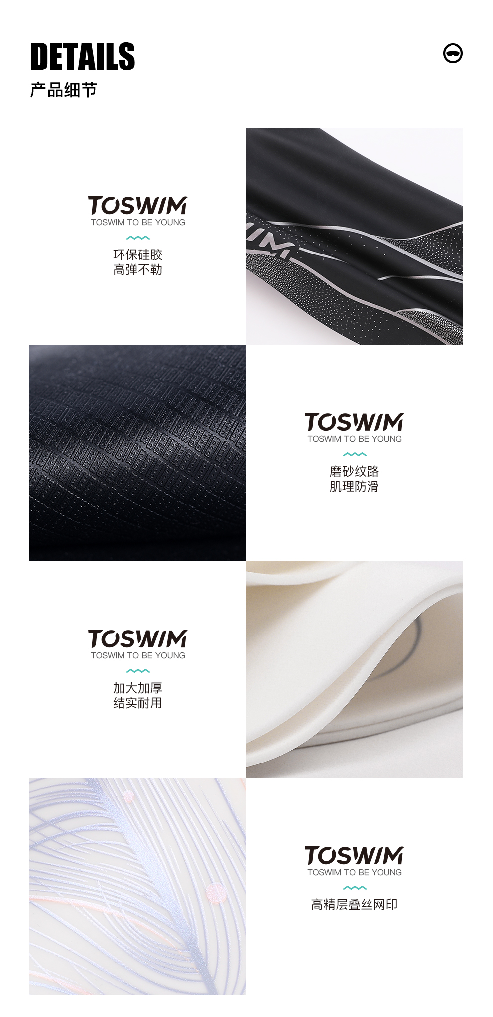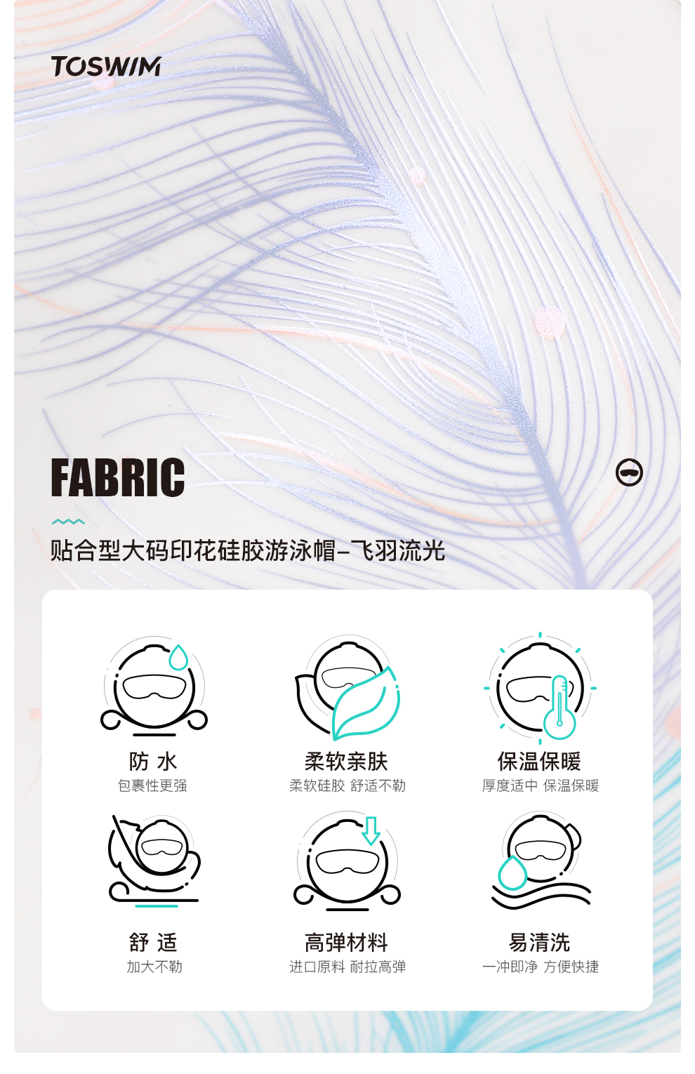 【代发】toswim贴合型/舒适型大码纯色硅胶游泳帽成人泳帽