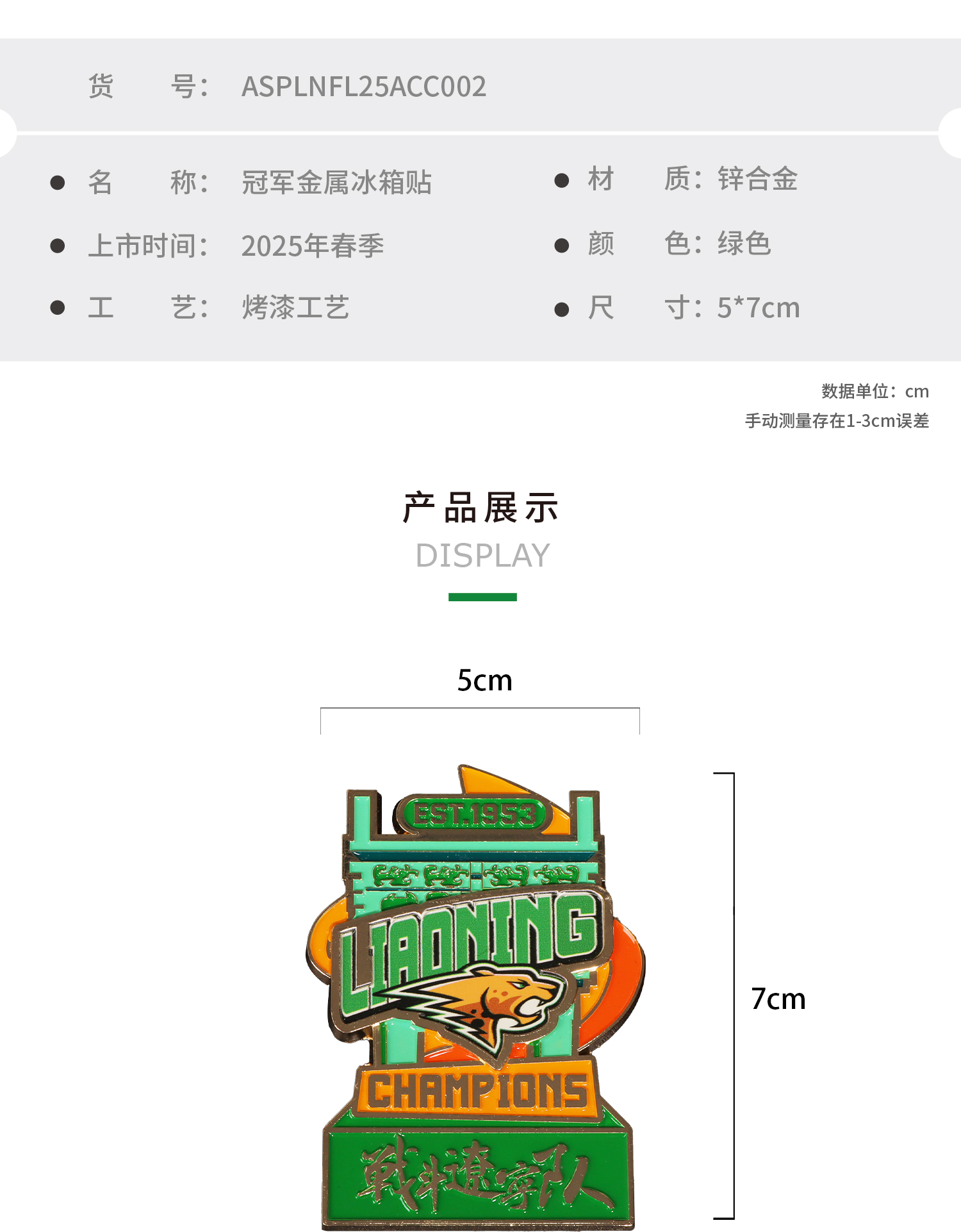 【官方正版】辽宁飞豹男篮|绿色金属冰箱贴创意磁贴球迷周边