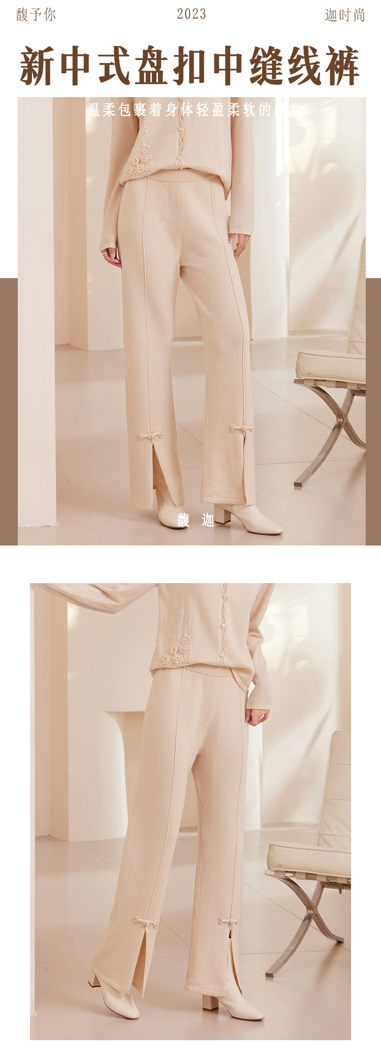 馥迦新中式温柔盘扣羊毛裤