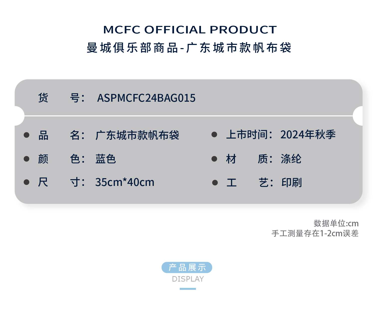 【官方正版】曼城俱乐部 | 广东城市限定款帆布袋挎包帆布包周边