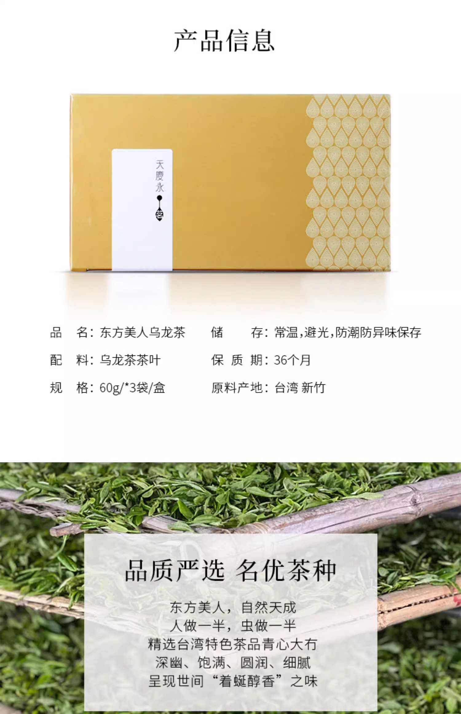 【天庆永】茗系列补充盒 东方美人乌龙茶60g*3袋/盒 台湾乌龙茶