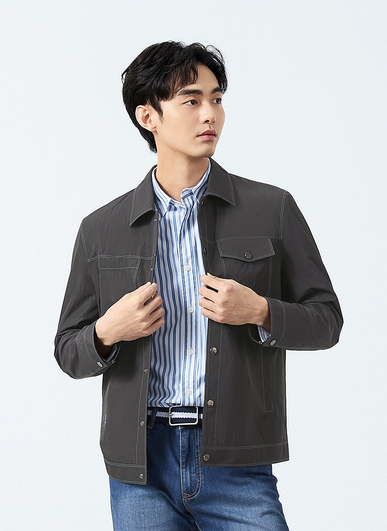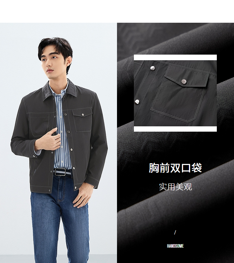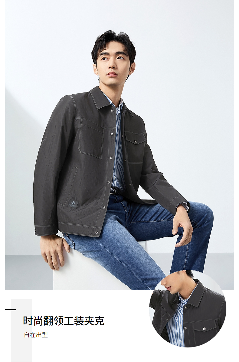 柒牌男装翻领夹克男2025春季新款时尚潮流休闲百搭钢压工装风外套128K70070