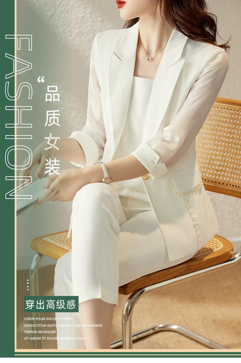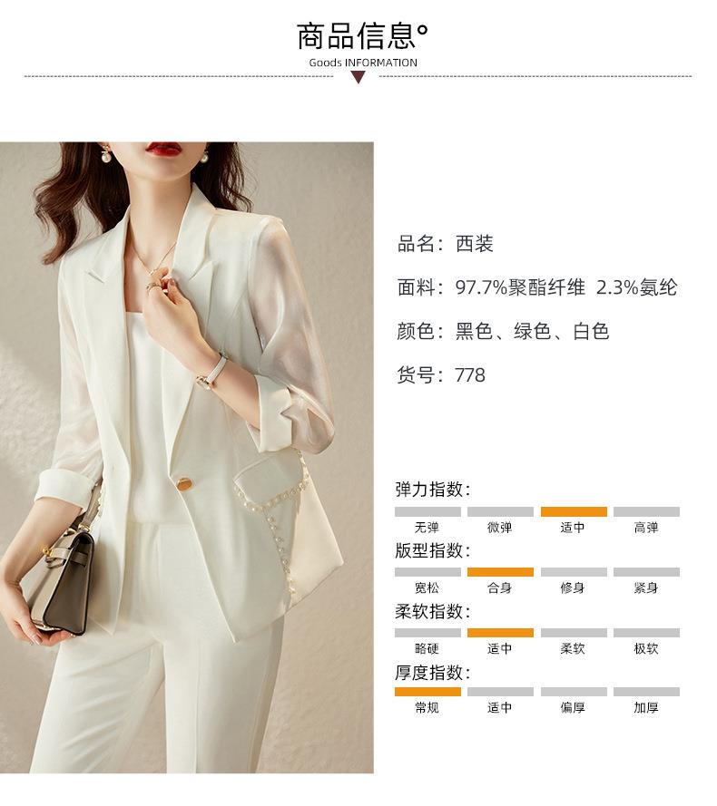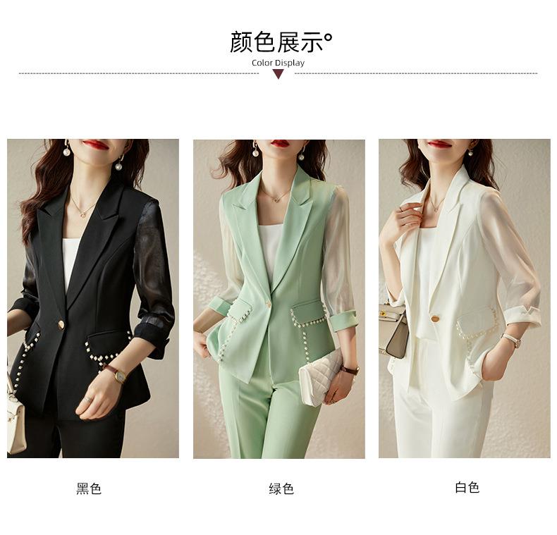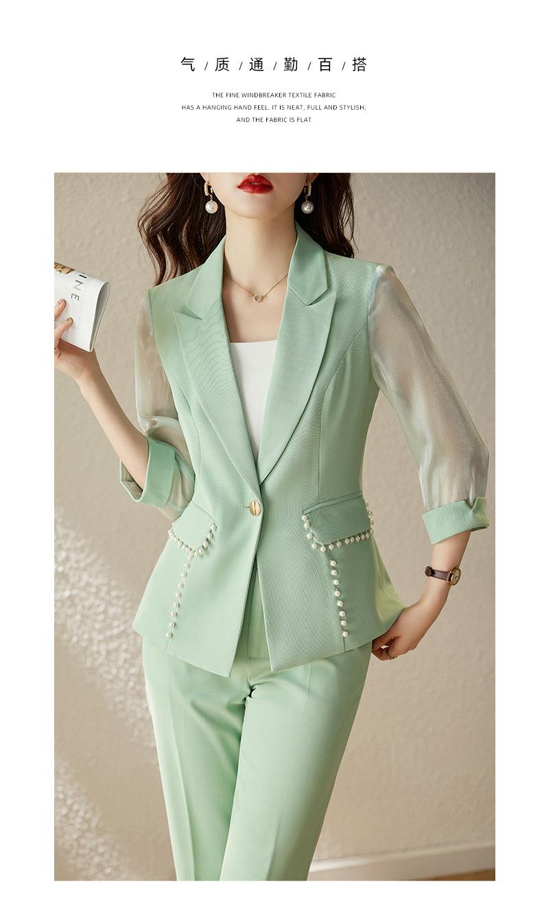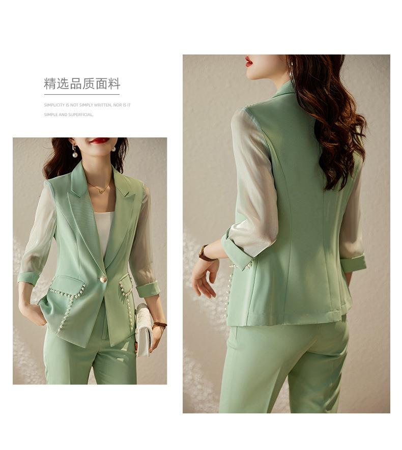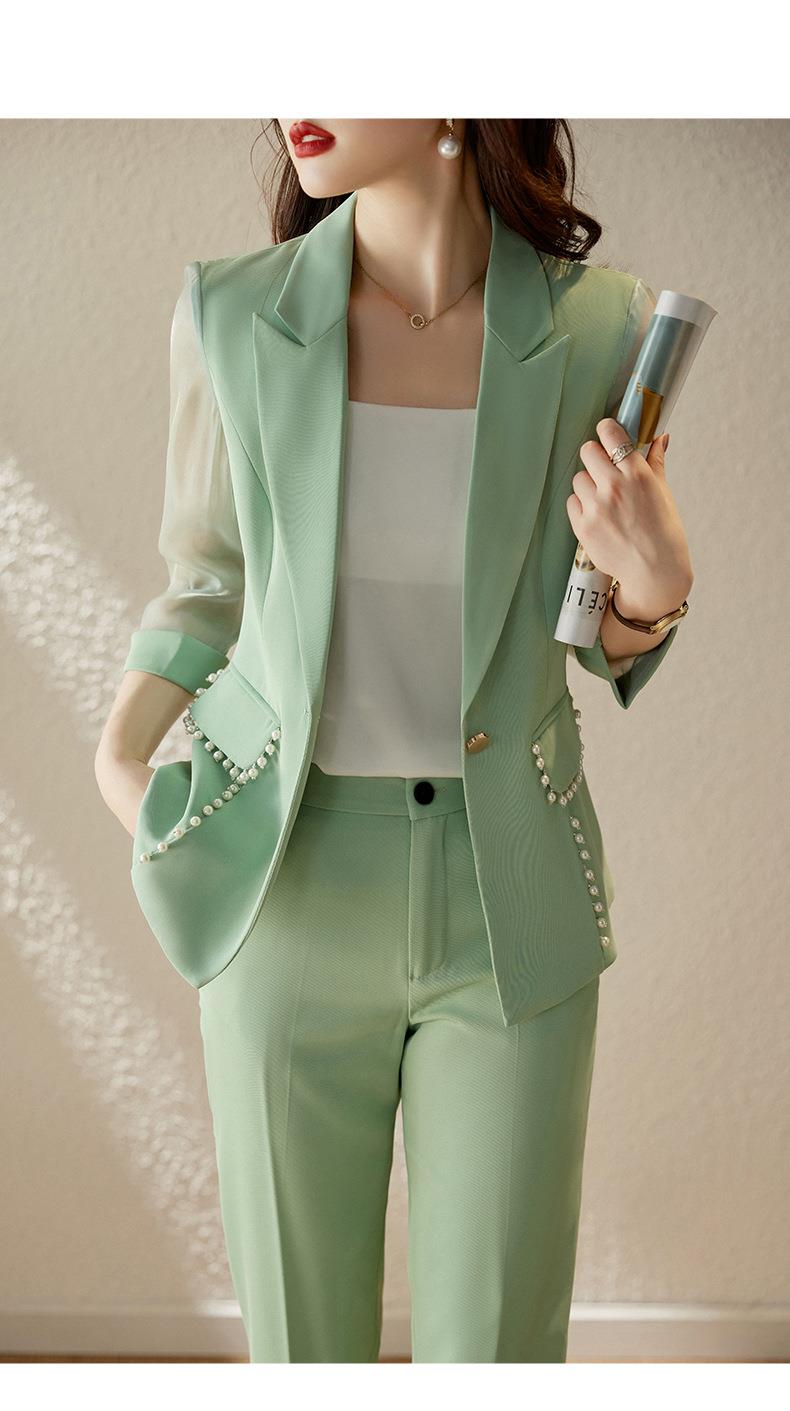 娜璐多 绿色西装套装女七分袖夏季薄款高级感通勤装气质女神范休闲小西服