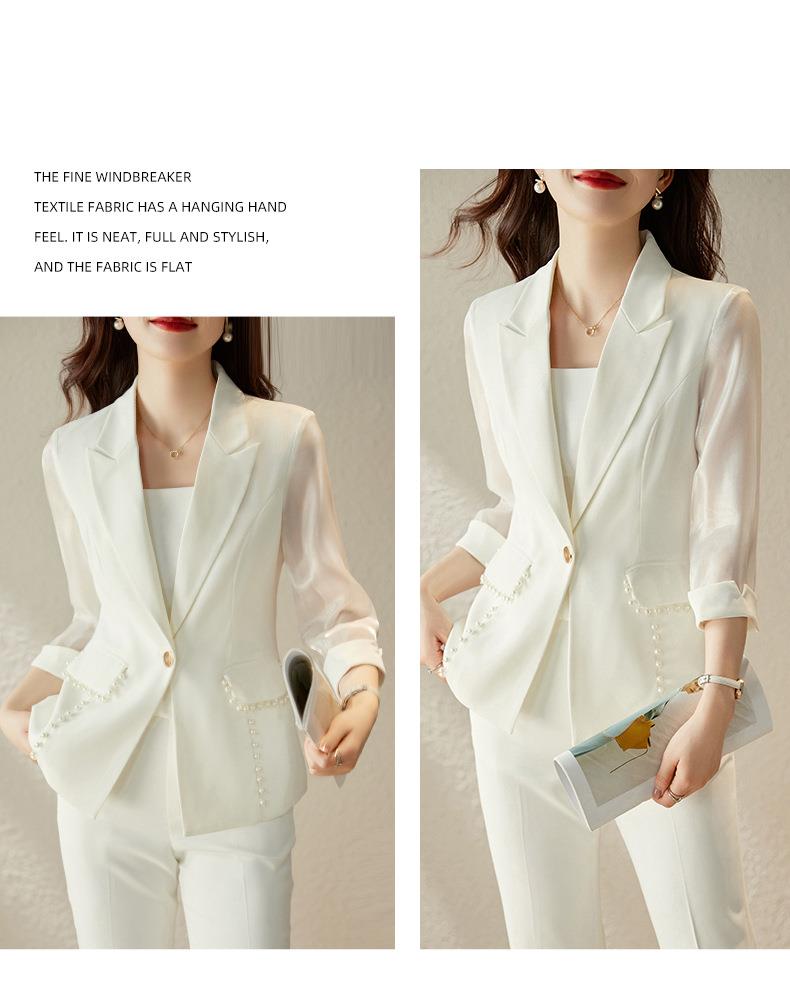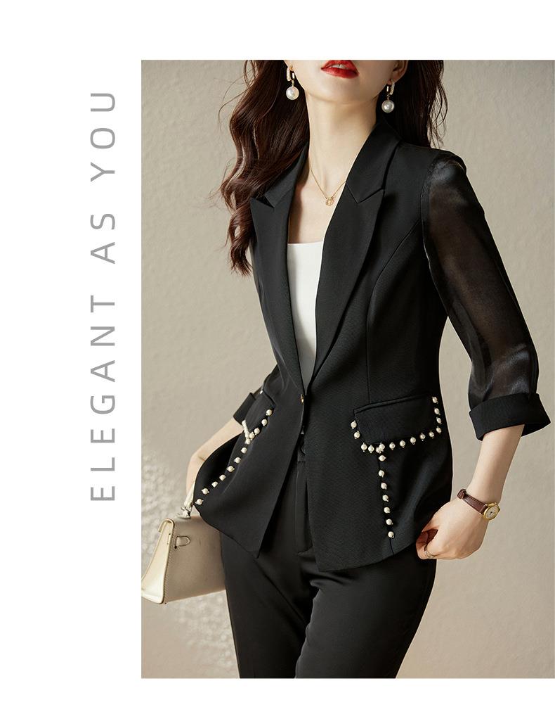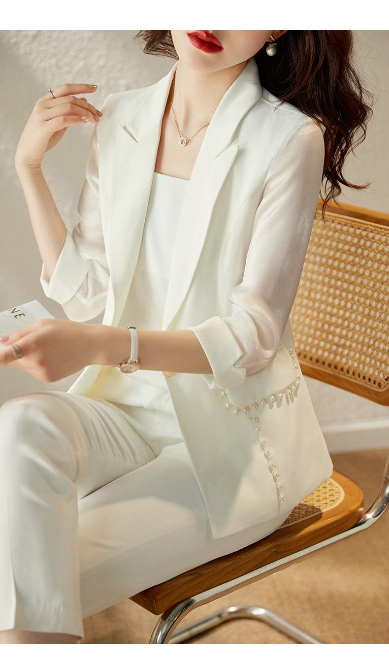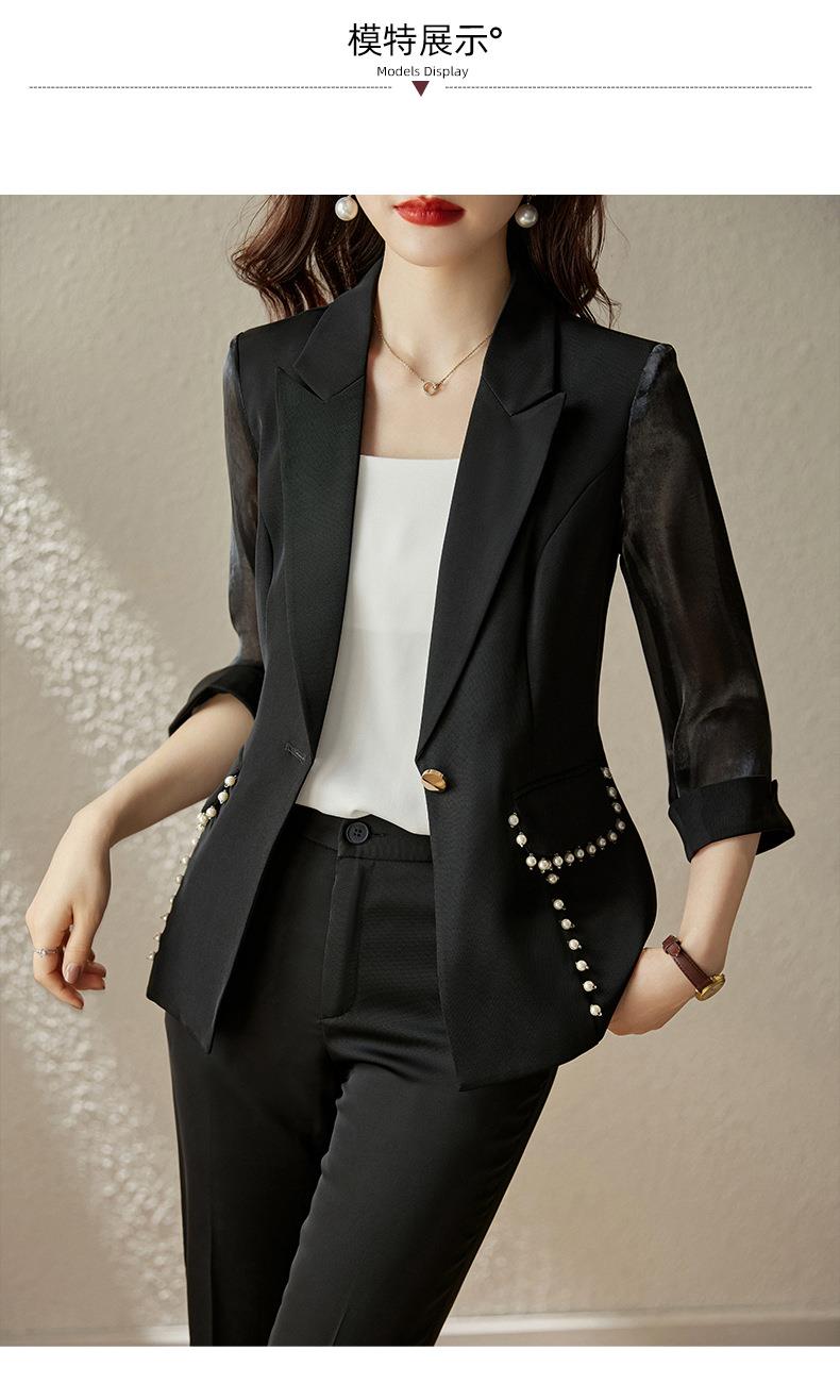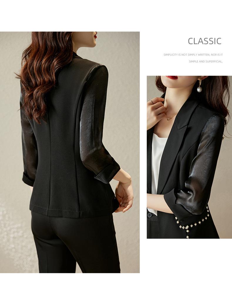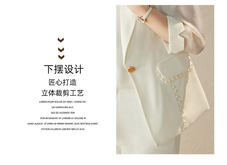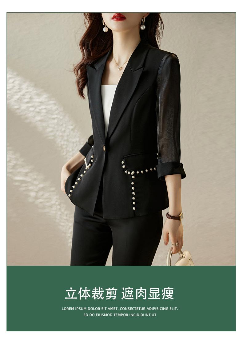 娜璐多 绿色西装套装女七分袖夏季薄款高级感通勤装气质女神范休闲小西服