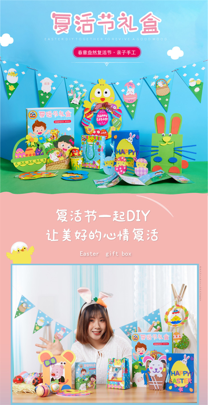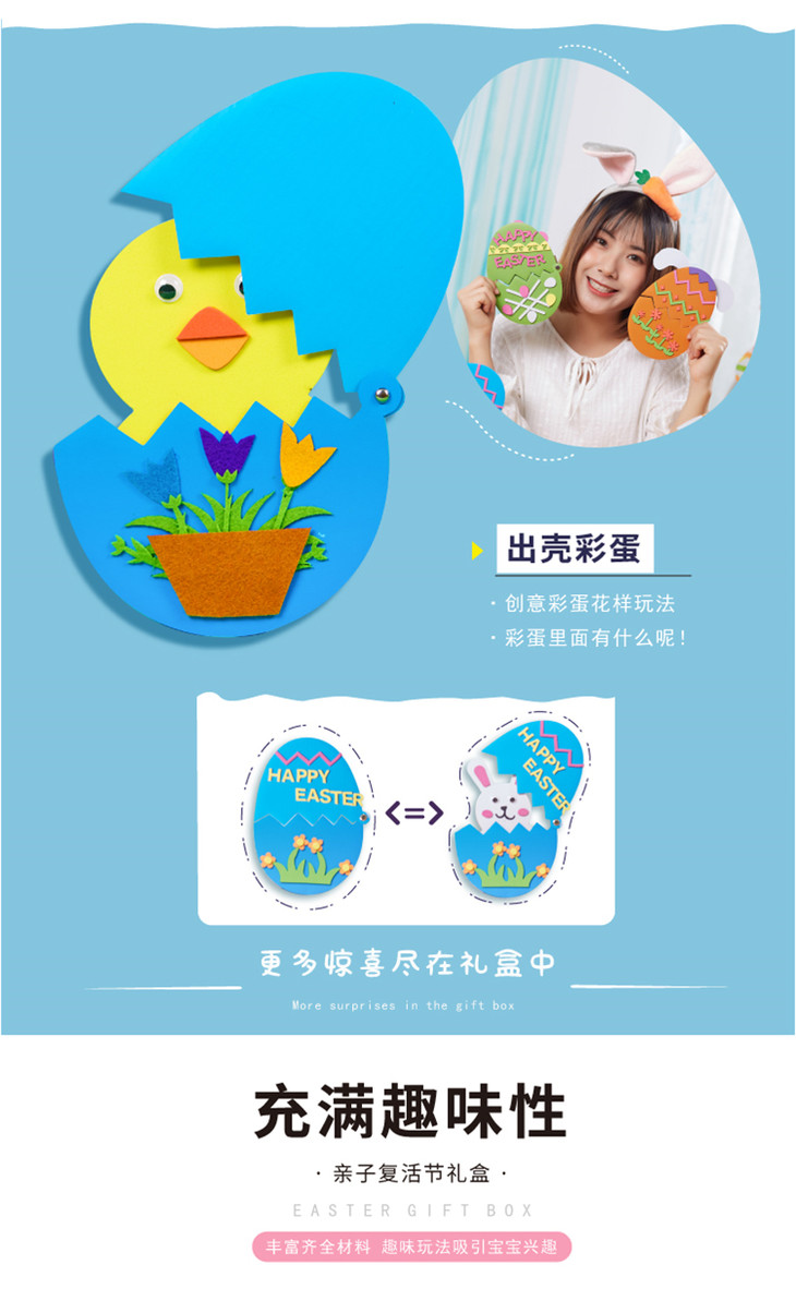 复活节手工diy礼盒儿童亲子创意制作套装幼儿园 益智彩蛋捣蛋材料