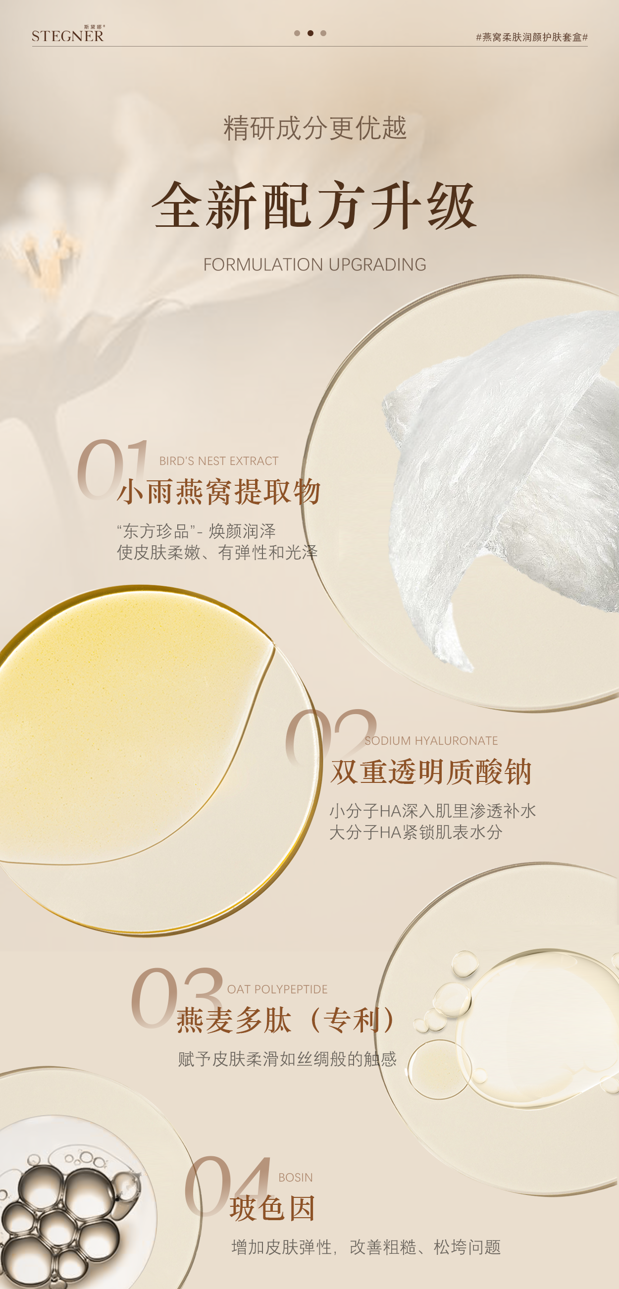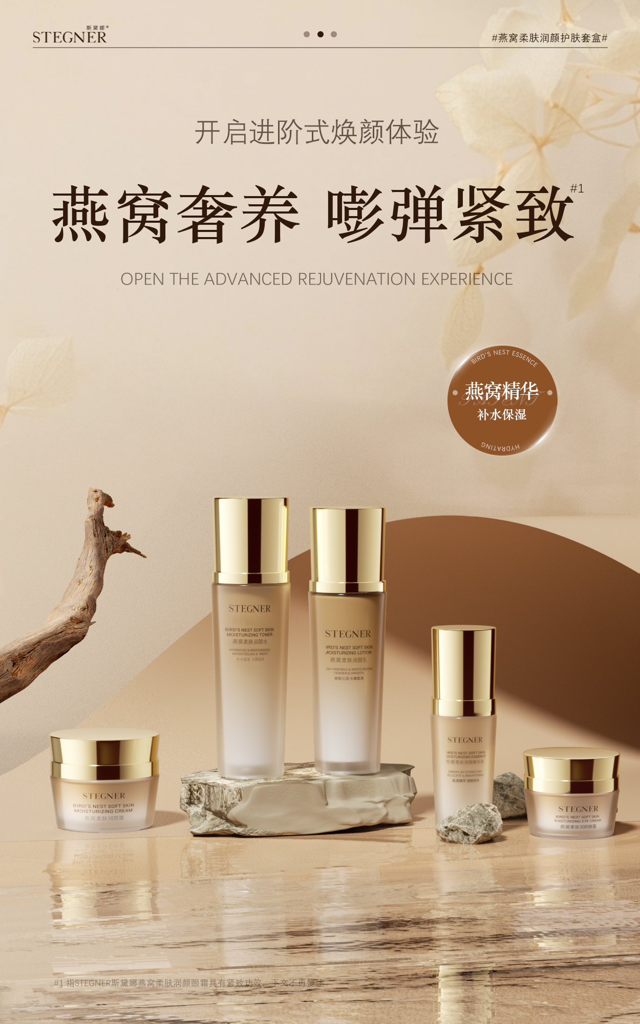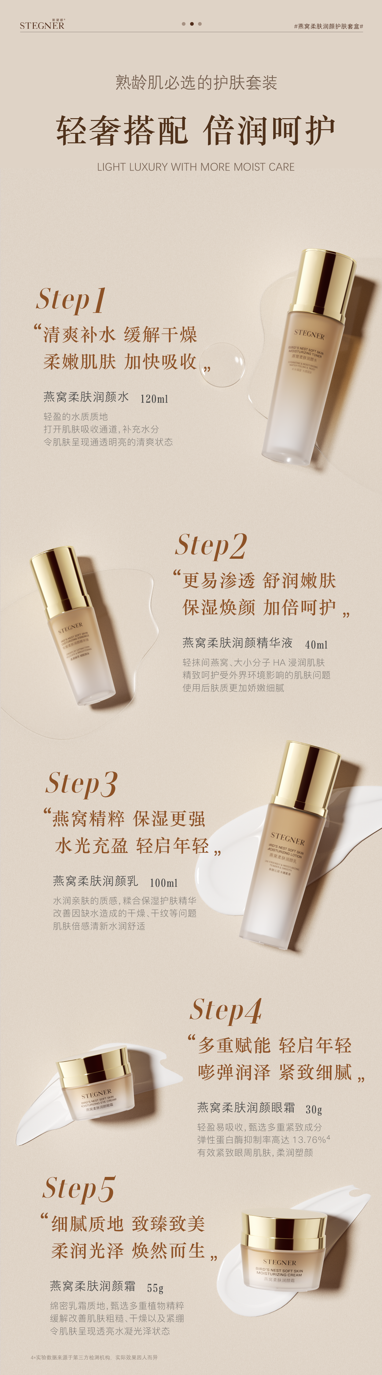活动【斯黛娜】 燕窝柔肤润颜护肤套装(燕窝柔肤润颜水120ml+燕窝柔肤润颜乳100ml+燕窝柔肤润颜精华液40mI+燕窝柔肤润颜霜55g+燕窝柔肤润颜眼霜30g)